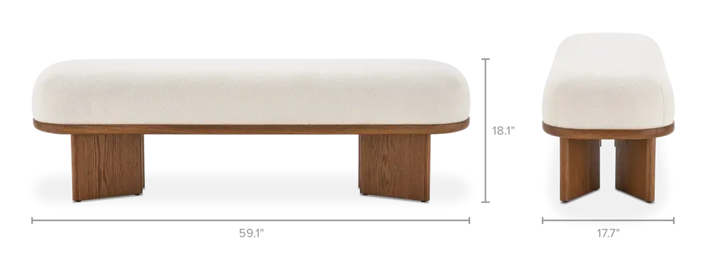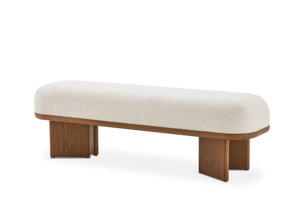 A chic addition to the end of your bed, in the dining room for extra guests or a comfy entrance bench to slip on your shoes. The Abbey Bench can handle it all with its wooden slab leg design and lasting performance bouclé.