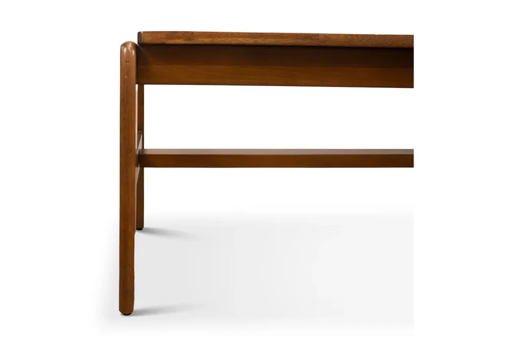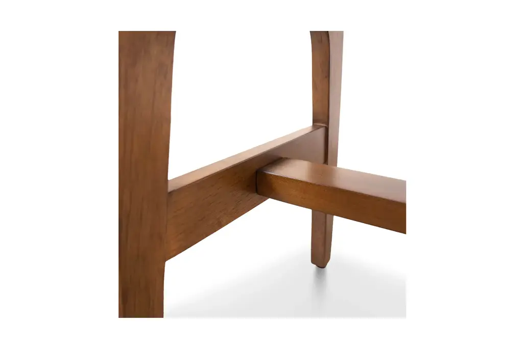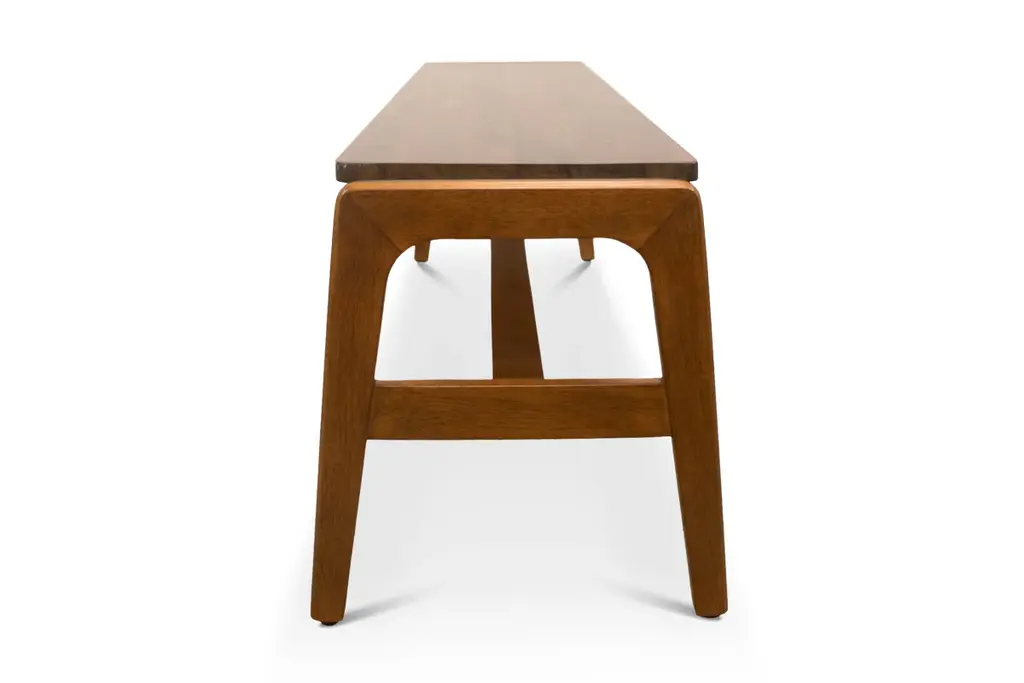The Aiken Bench showcases a sleek, minimalist design crafted from solid acacia wood, beech stretcher, and rubberwood legs, finished with a warm rich brown stain that highlights the natural grain. Its sturdy rectangular seat is supported by gracefully rounded legs connected by a stylish horizontal stretcher, providing extra stability and durability. Perfectly suited for contemporary wood furniture collections, this bench fits seamlessly alongside a modern dining table, in an entryway, or at the foot of a bed, comfortably seating two. The clean lines and subtle curves make the Aiken Bench a versatile, timeless piece for any living space.