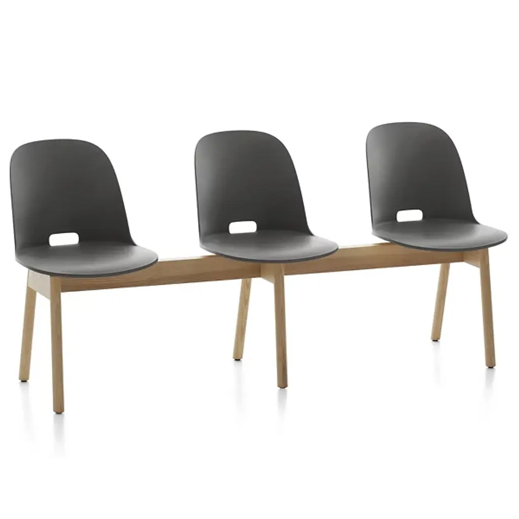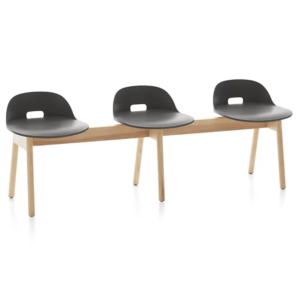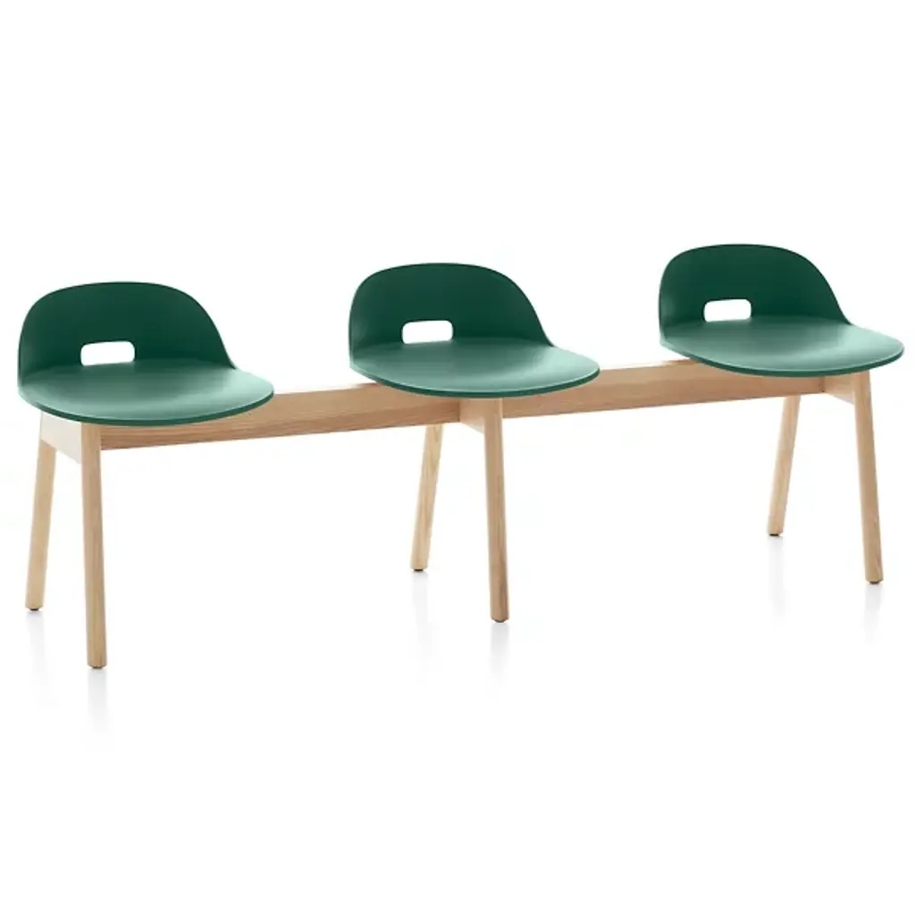 Experience the perfect combination of simplicity, comfort, and durability with the ALFI 3-Seat Low-Back Bench from Emeco. Made with 100% reclaimed wood polypropylene seats and a 6-legged Ash wood base, this modern design is built to last. With soft plastic gliders to prevent scuffing, it's perfect for entryways, offices, and casual dining spaces. Highlights
