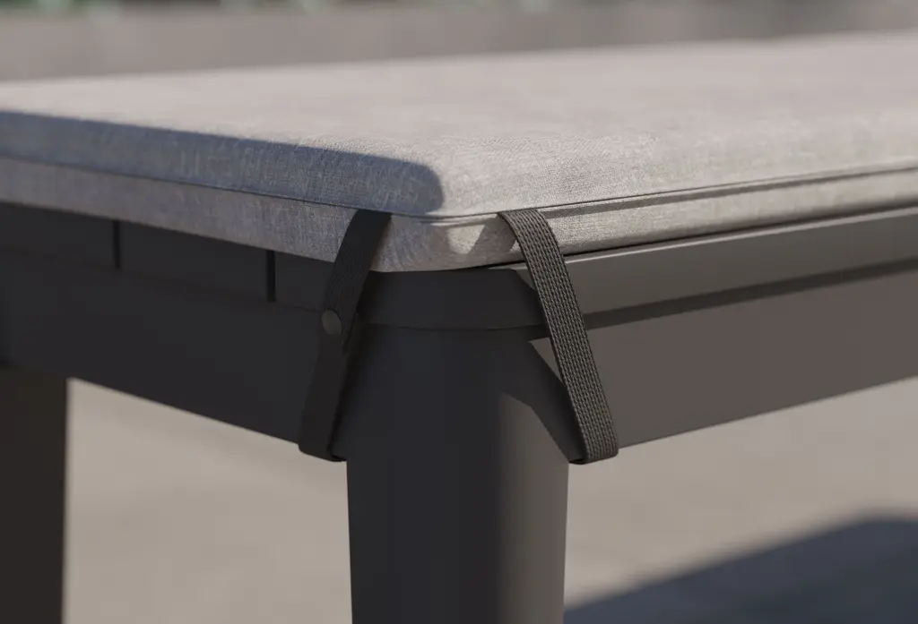 Enjoy the perfect blend of comfort, durability, and casual style with our Aluminum Dining Bench Cushion. Thoughtfully designed for added convenience and to enhance the comfort of your dining bench, the Aluminum Outdoor Dining Bench Cushion makes every alfresco meal even more relaxing and enjoyable. The cushion snaps securely onto your Aluminum Dining Bench, ensuring it stays in place. And, when your dining set is not in use, the cushion's foldable design and carrying handle make it effortless to transport and store. Crafted with our innovative OuterWeave® performance fabric, this cushion offers a soft and luxurious feel while being engineered to withstand the elements, resisting water, stains, mold, and fading. Plus, our eco-friendly solution-dyed fabric requires less dye, ensuring vibrant, long-lasting color while being kind to the environment.