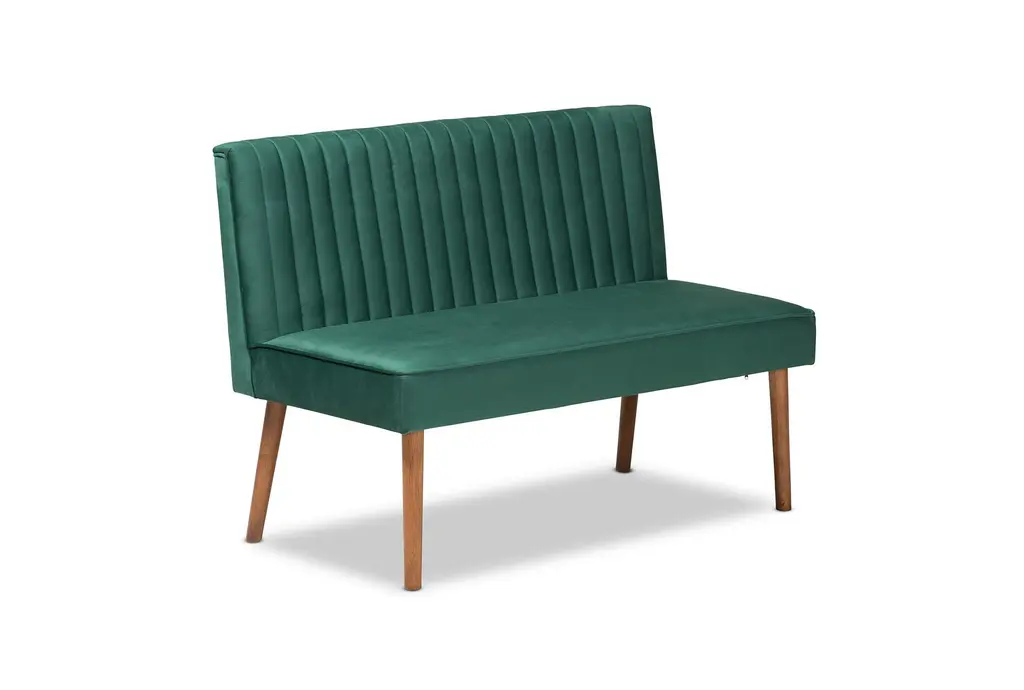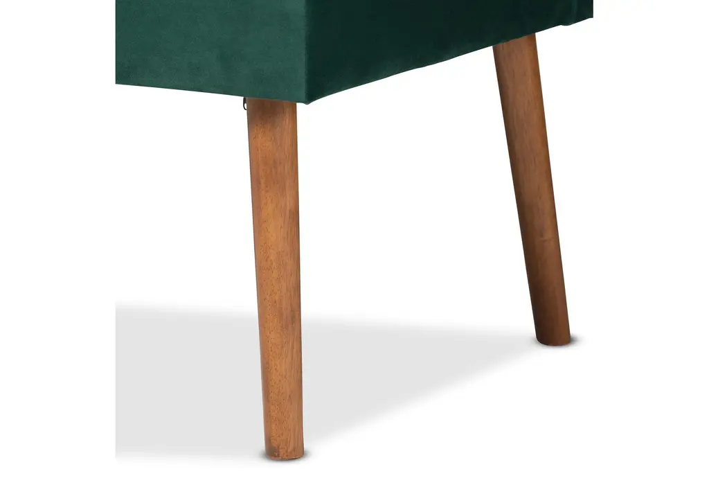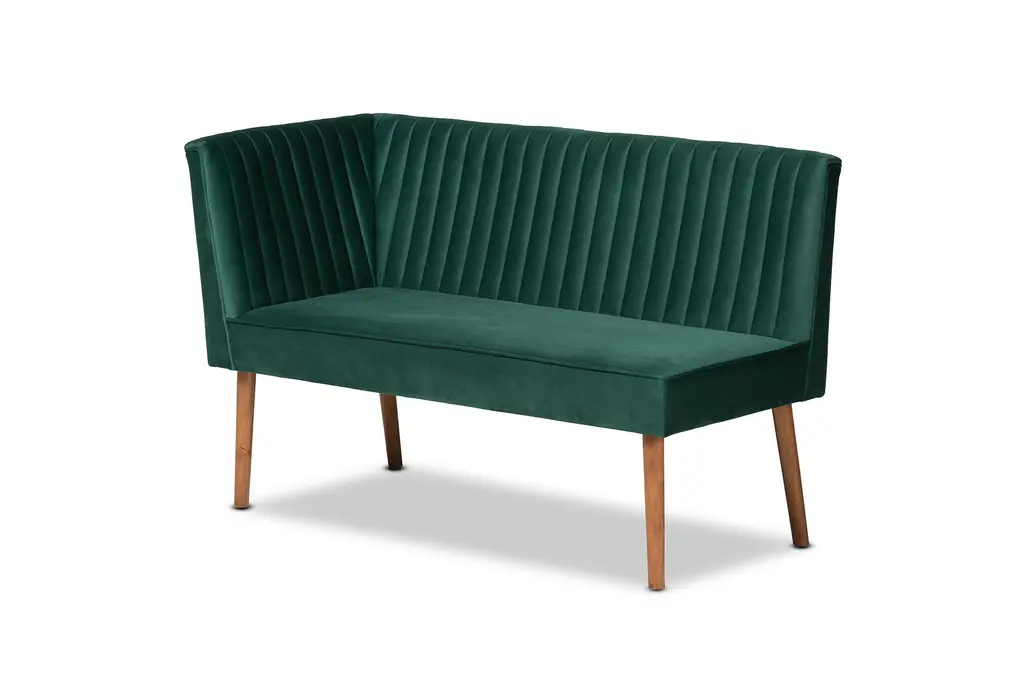 Alvis Mid-Century Modern Emerald Green Velvet Upholstered And Walnut Brown Wood 2-Piece Dining Nook Banquette