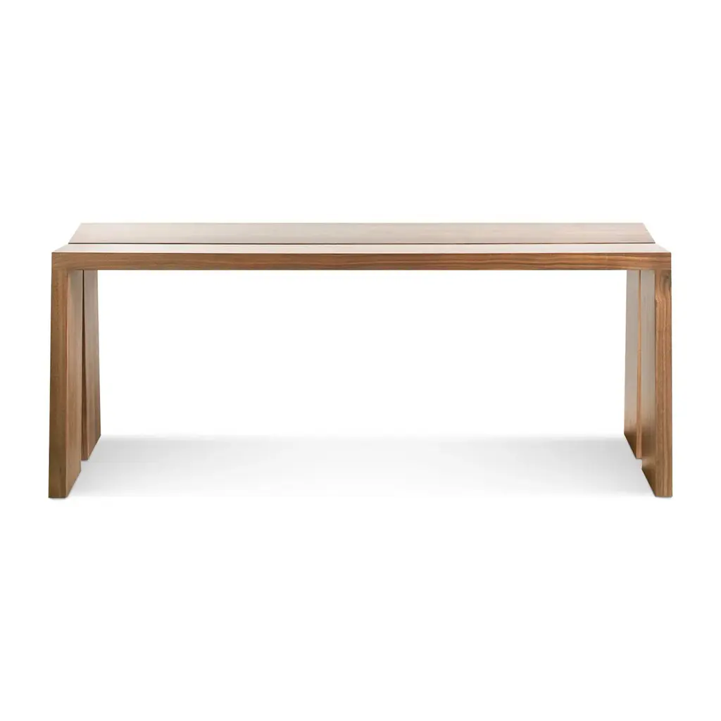 Upgrade your interiors with the material and visual beauty of the Amicable Split Bench from Blu Dot. Crafted with two elegant wood planes held together by sleek steel brackets, this bench brings spacious seating to any room. Unexpectedly comfortable, it's perfect for dining tables, entryways, or bedrooms. Highlights
