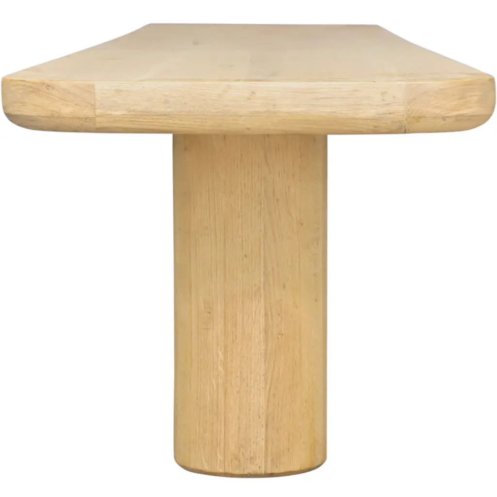 The Anders dining bench's minimalist silhouette, featuring a half-bullnose edge and sleek column legs, offers visual lightness that enhances various interior styles. Crafted from FSC-certified oak, each bench tells a unique story through distinct grain patterns and knots. Comfortably seating three, this versatile piece seamlessly adapts to any setting with its timeless elegance and sustainable design.