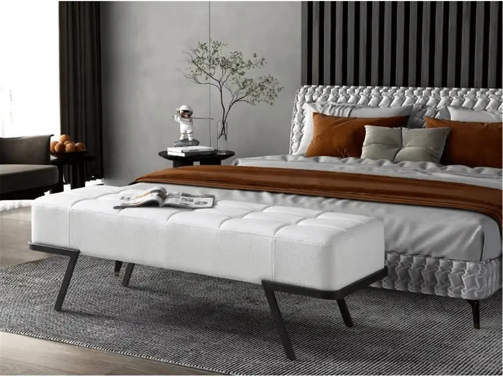 Give yourself a convenient spot to have a seat and kick your shoes off by the front door, punctuate the end of your bed in the master suite with this bench or add it to your dining table. Founded with four black sanded coated steel legs, and upholstered with a taupe or white faux leather for a touch of glam.