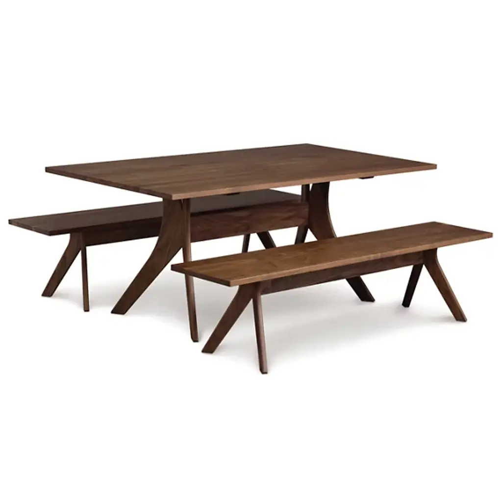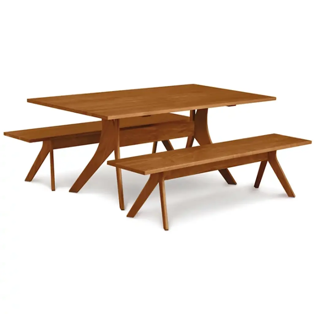 Designed to work alongside the Audrey Table, the Copeland Furniture Audrey Bench will add angled elegance to any dining set. It is made out of solid cherry or walnut, with an X-shaped base providing stability and a uniquely modern look. Available in your choice of length and finish.