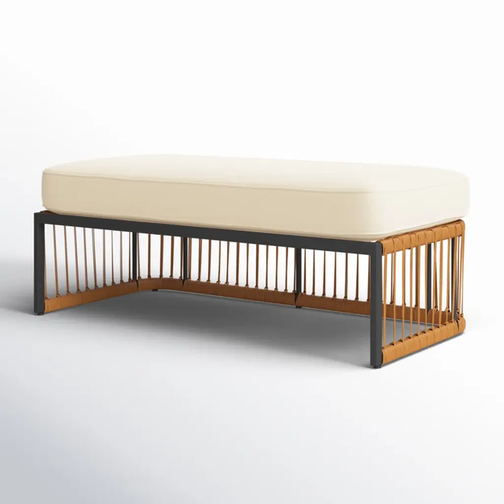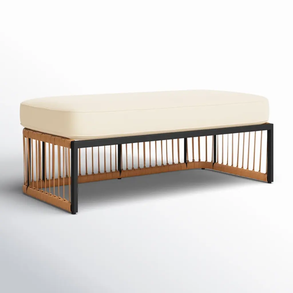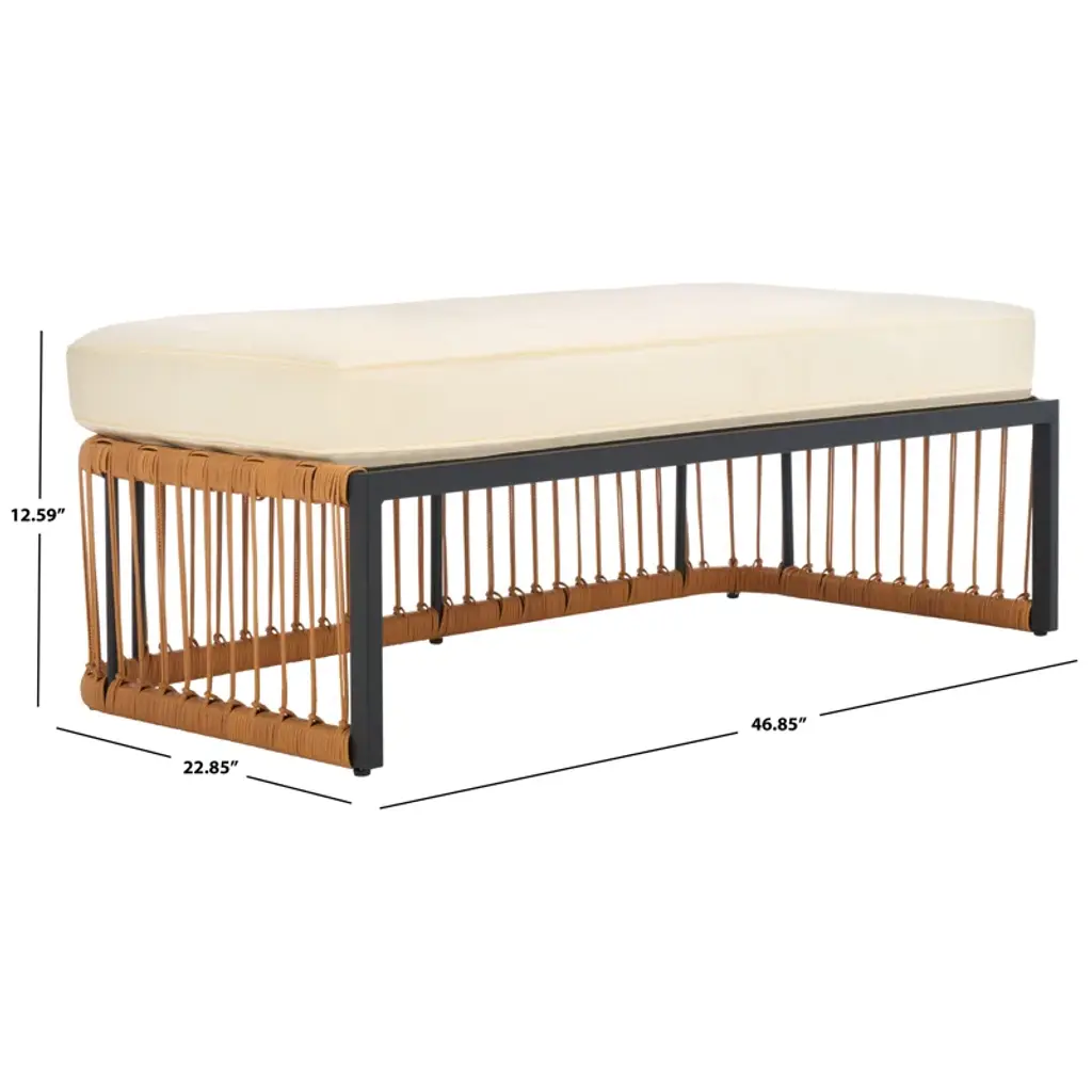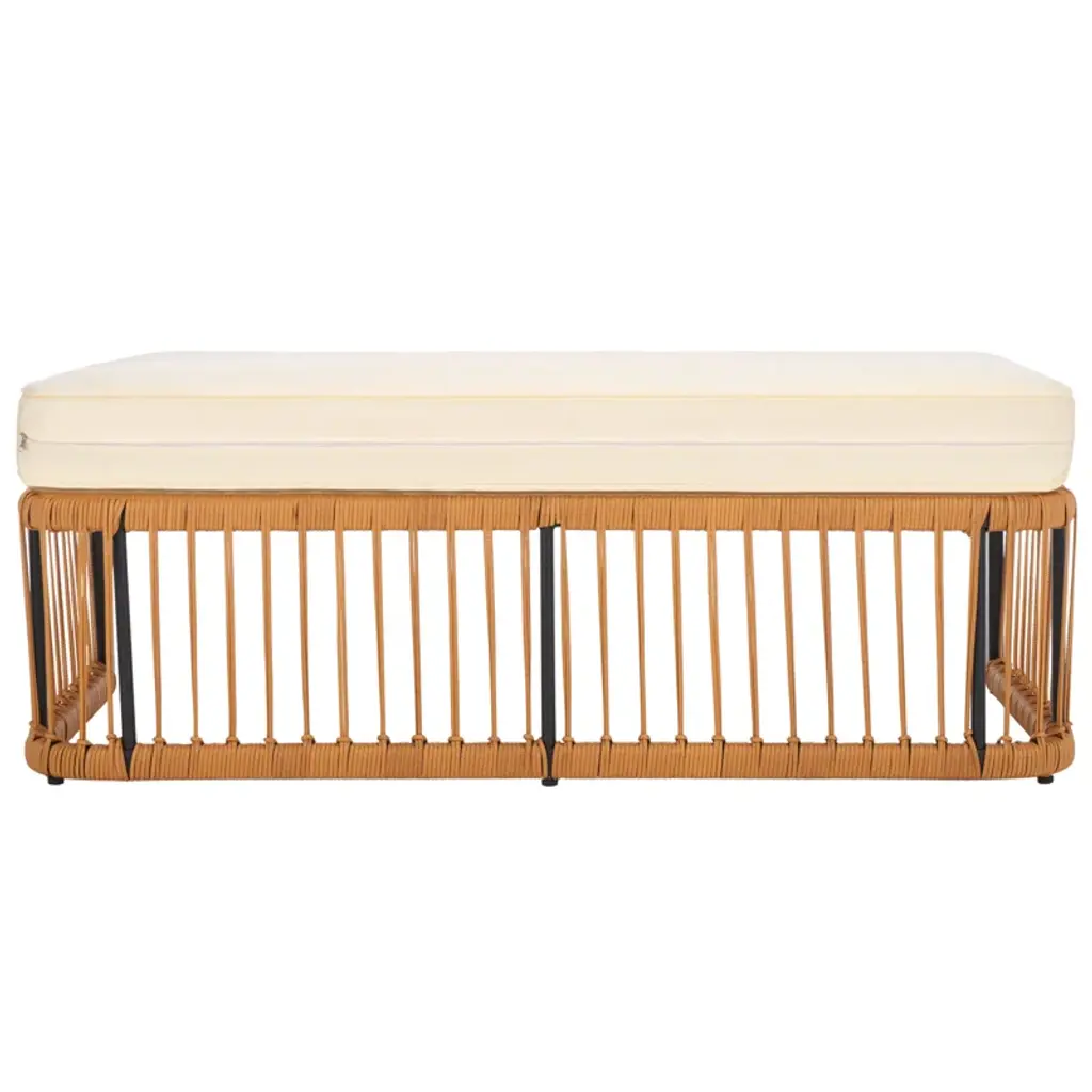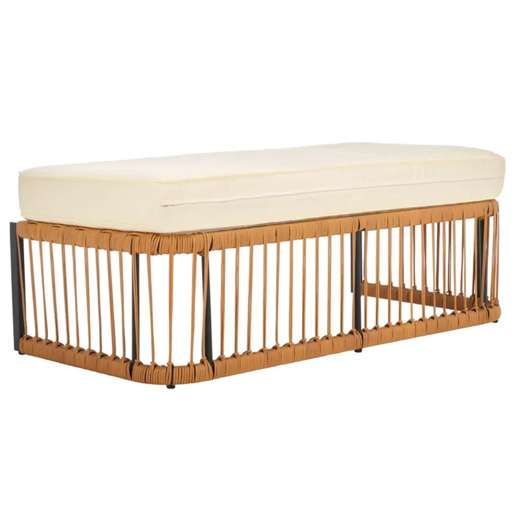 Bring comfort and breezy appeal to your outdoor living with our Aura bench. Our streamlined bench offers a modern look with a rich touch of textures. A linear wrapping detail with PE rattan lends an airy and fresh look to the bench. It is topped with a generously padded beige-coloured seat to offer a comfortable stay. Reinforced with a powder-coated steel base, our bench remains a durable and long-lasting addition. It remains a perfect complement to a laid-back dining space or creates a flexible setting for lounging and entertaining outdoors.