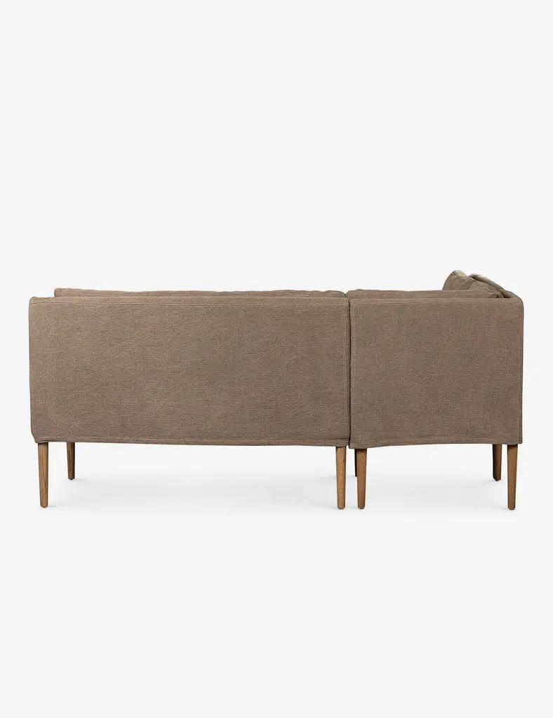 Four Hands brings their exceptional craftsmanship to a timeless collection rooted in Amber Lewis' perennial California style. Elegant sloping arms create a sense of movement in this banquet, offering a plush bench seat and sleek silhouette. Its inviting form pairs with rounded lines to create a luxurious bench seat for your kitchen or dining nook.