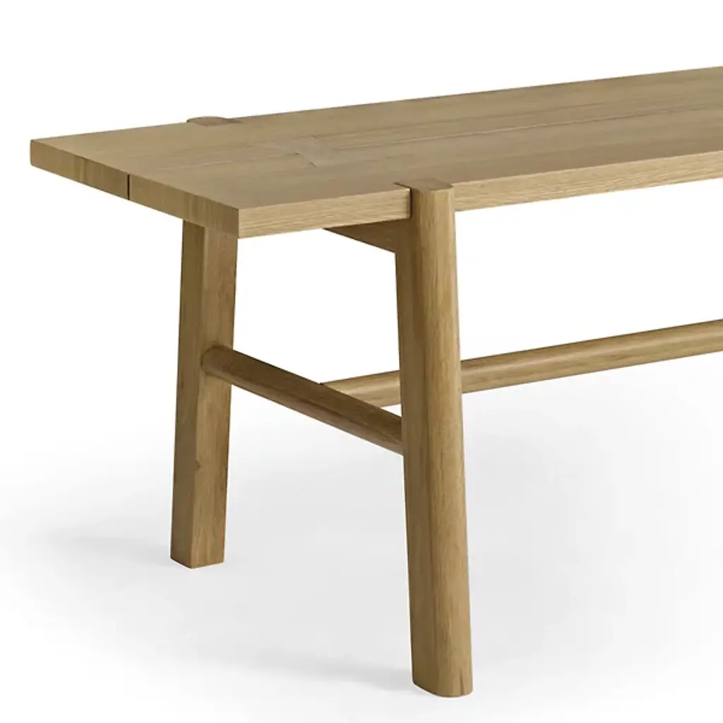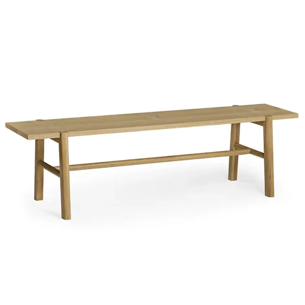 The Avonelle Dining Bench from Alder & Ore offers rustic charm with a modern twist. This European-inspired piece marries the warmth of solid oak and rubberwood with the refinement of oak veneers. The bench's clean lines and light finish breathe new life into farmhouse aesthetics, making it a standout in any dining space. Its sturdy construction promises durability, while the smooth surface invites comfort during lengthy meals and lively conversations. Perfect for those who appreciate the beauty of natural wood grains, this bench adds character without overwhelming your decor.