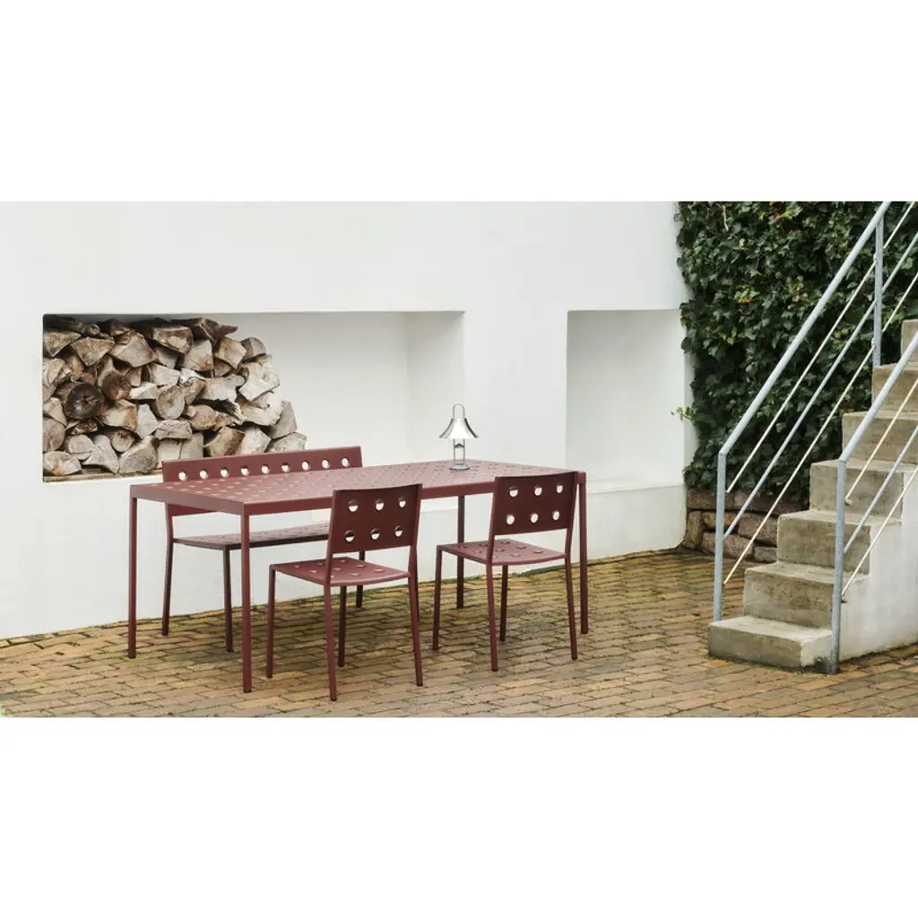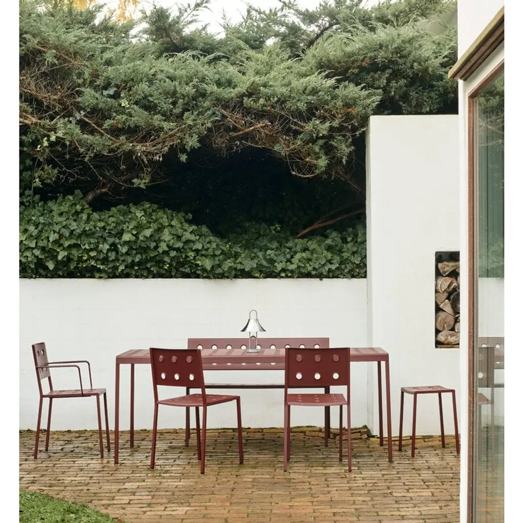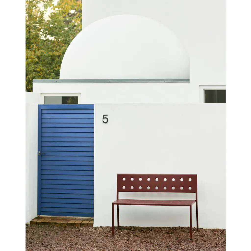 HAY's Balcony Dining bench is part of a clever collection of outdoor furniture designed by the Bouroullec brothers. Made of thin steel sheet, the elegant Balcony outdoor benches and seats are incomparably light and easy to move – a perfect addition to the garden, patio, terrace or balcony. The round holes pressed through the steel plate provide multiple functions: they add character and softness to the geometrical design and allow rainwater to drain off the bench's surface, while also strengthening the structure of the furniture. Featuring a weather-resistant coating the Balcony collection is as carefree as it looks. Try combining a high Balcony bench with a Balcony table of the same color – or choose a table in a completely different hue to create some funky color combinations! If you're looking for extra comfort, there are Balcony seat cushions sold separately, also available in many different pleasing shades.