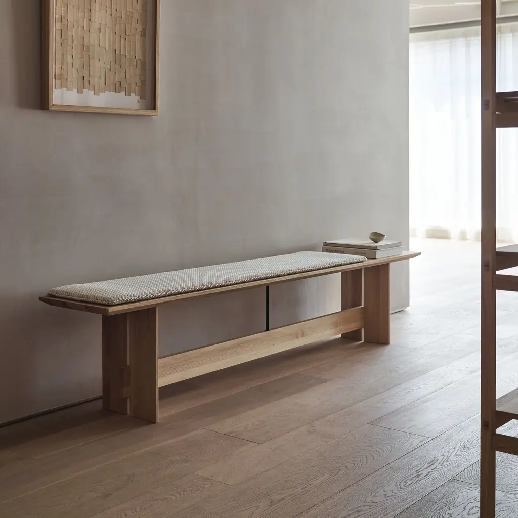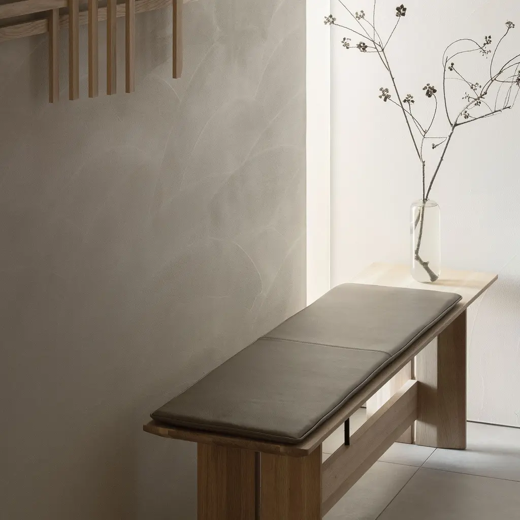 A sleek upholstered cushion in a choice of fine fabric or leather complements the harmonious lines of Tokyo designer Keiji Ashizawa's solid-oak bench. A-B01 takes form with a wafer-slim seat and legs that bespeak fine craftsmanship and a horizontal strut that braces the structure with a delicate steel rod. Available in a choice of 3 sizes, it's a multipurpose seating piece that finds favor in the entry, dining area or living spaces.