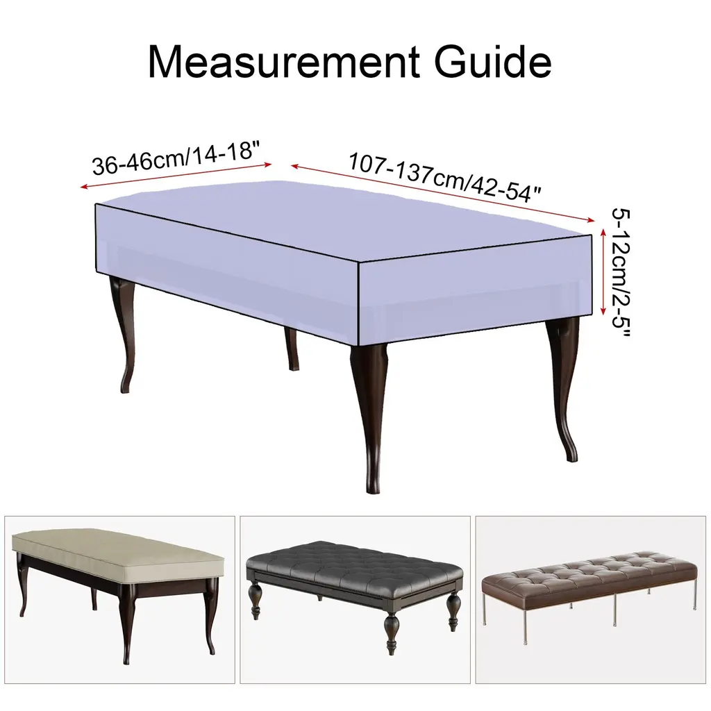 Description:Good Material: Stretch chair covers are made of 92% polyester and 8% spandex. The good quality fabric is durable, comfortable, and wrinkle-resistantEasy to Use: This stretchy bench cover can fit firmly, so it will not be moved. The stool cover is machine washable and can be dried at low temperatures without ironingWidely Used: This dining room bench cover protects your dining room bench from spills, dirt, and wear and tear. It is perfect for remodeling benches in kitchens, bedrooms, dining rooms, restaurants, living rooms, hotels, and moreDirt and Scratch-resistant: Our bench cover can upgrade your old upholstered bench and make it look more sophisticated. It not only prevents your new bench from getting dirty or slightly scratched but also brings your worn-out old bench back to lifeSpecification:Stretch Length: 107-137cm/42-54inchStretch Width: 36-46cm/14-18inchStretch Height: 5-12cm/2-5inchPackage Content: 1 Pcs Bench Cushion Cover