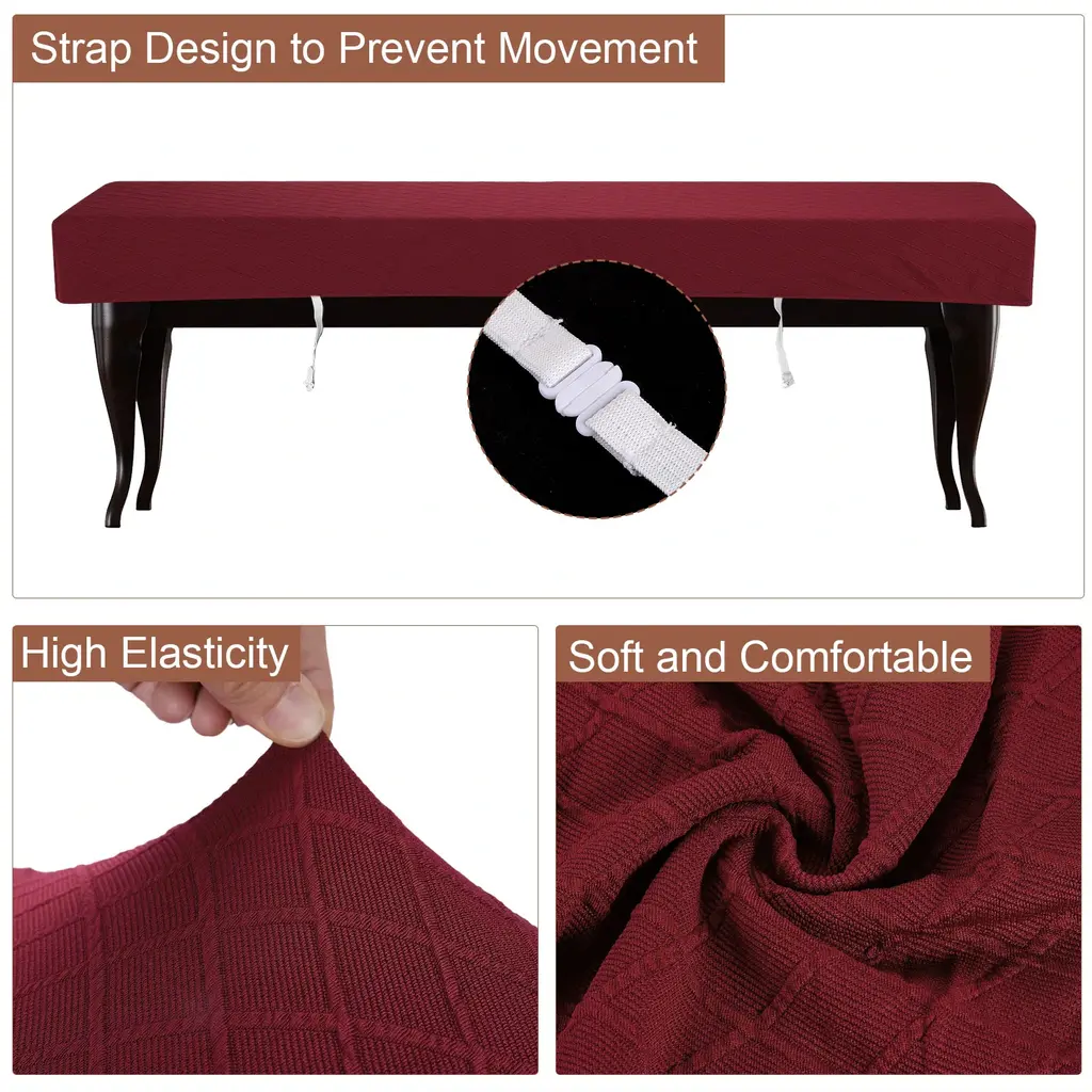 Bench Cushion Cover Stretch Jacquard Checkered Dining Bench Cover - Beige