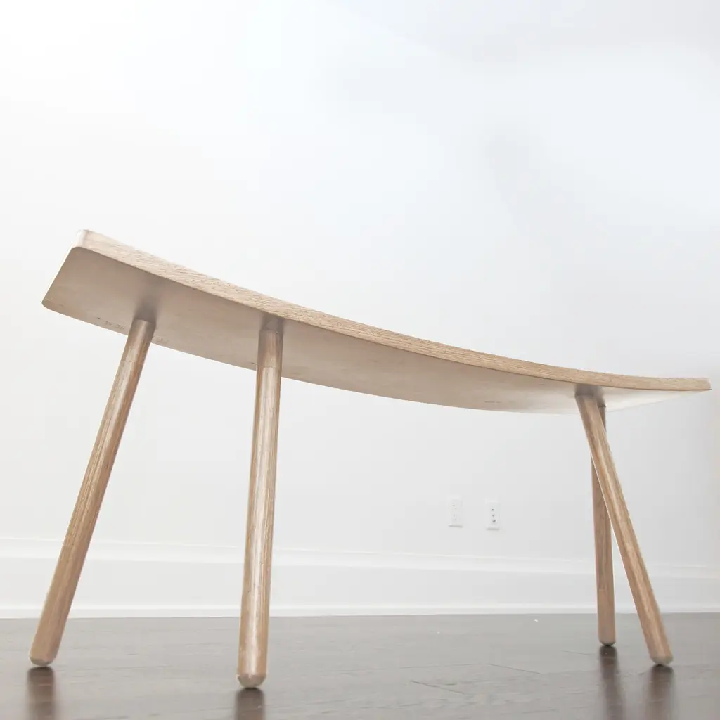 Taking inspiration from a metal handrail that has slowly changed its shape after years of being used as seating, the Bent Bench is designed to bring people together by encouraging closeness and human interaction. The wooden bench is beautifully curved, lending a certain intimacy to the traditional garden or table seating designs. Modern, elegant and minimalist, Bent Bench is also full of warmth as it is made from solid ash wood, adding organic charm and a rustic yet refined aesthetic to any décor. The bench can be used in a garden, on a terrace, or as a creative accent in a corridor or dining room.