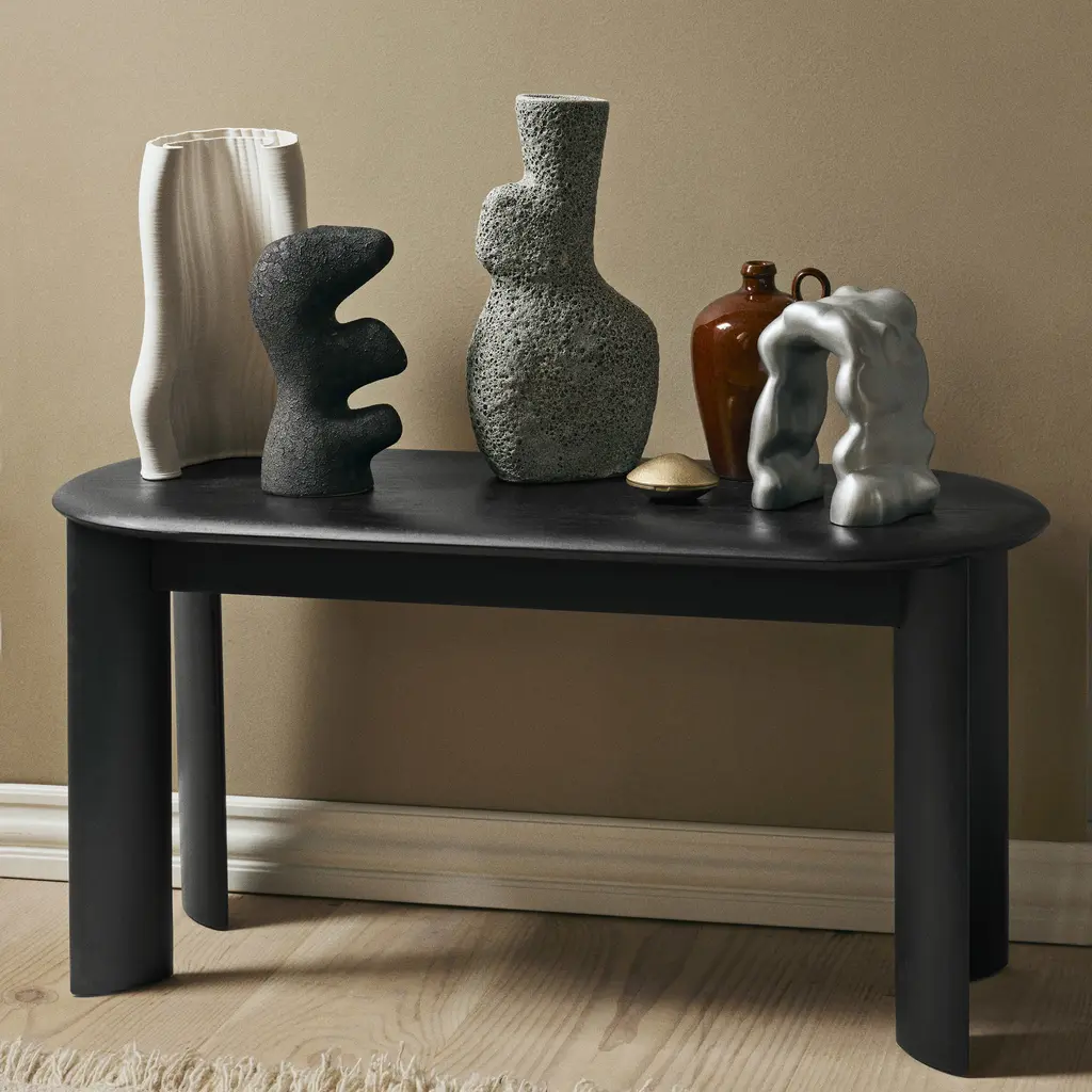 Copenhagen's Ferm Living offers a versatile bench with the gently rounded edges that signify its Bevel collection. With the same broad sculpted legs, the solid-oak bench perfectly complements the series’ dining table. The bench also can be put to use as extra seating in a hallway, living room or bedroom. It's available in a choice of natural and black oiled oak or an ice blue accent shade.