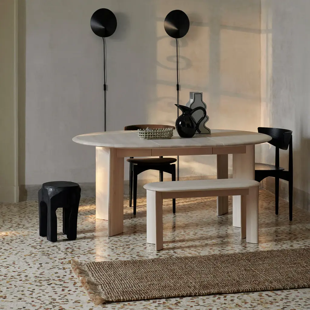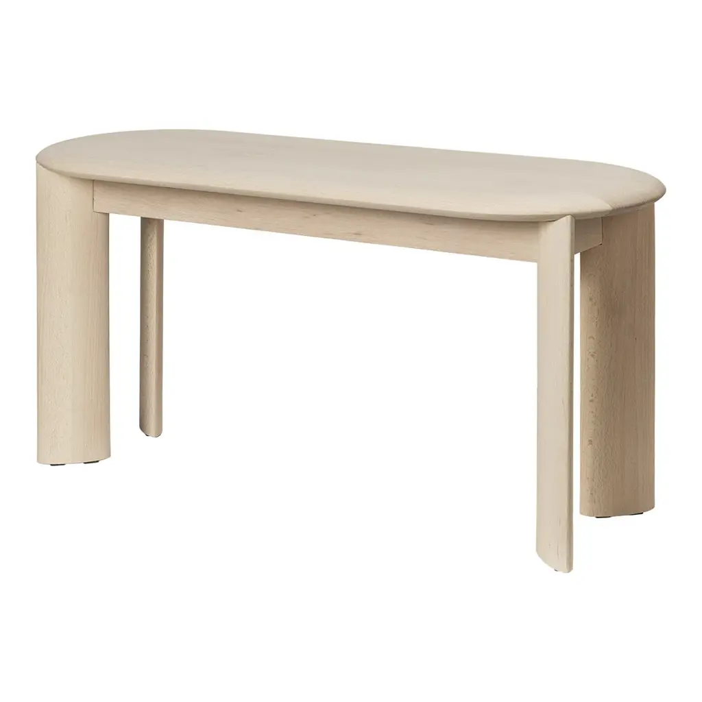 The flat, broad legs of our Bevel Bench update the traditional seat design, made from solid oak and offered in a modernist black oiled finish. The versatile bench has gently rounded edges that perfectly complement the series' dining table. It can also be put to use as extra seating in a hallway, living room or bedroom.