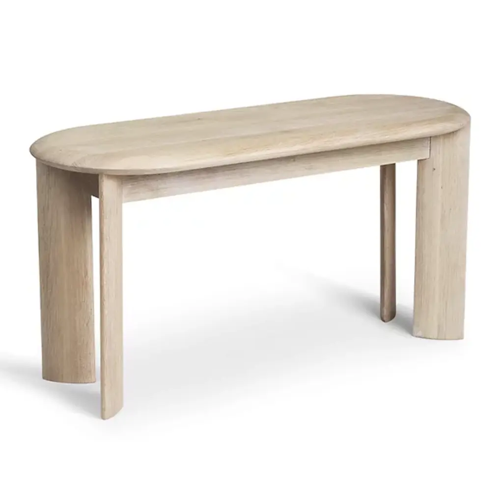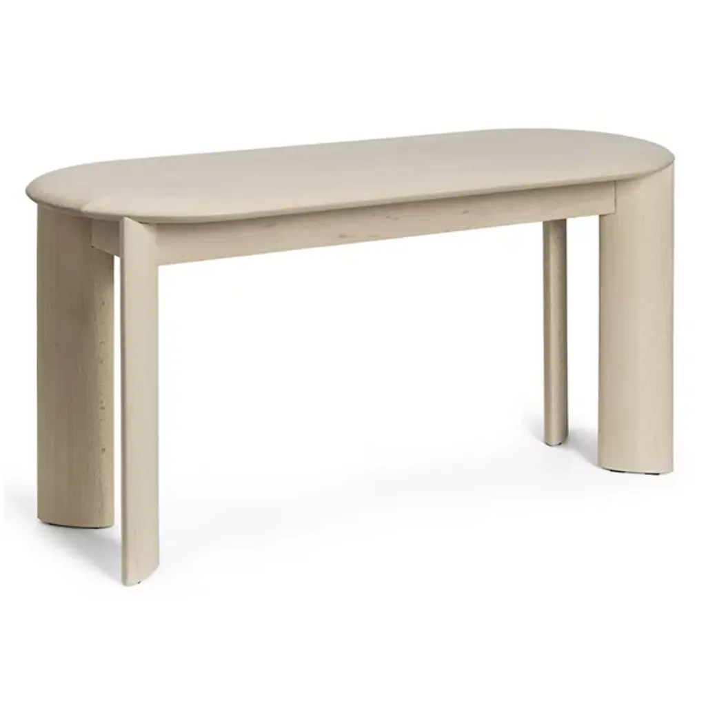 The Bevel Bench by Ferm Living is meticulously crafted from solid, FSC™ certified wood. It showcases flat, broad legs that reinvent traditional seating aesthetics with a modern twist. Its gently rounded edges perfectly complement the dining table from the series, ensuring seamless coordination. This versatile bench adds style and functionality to any space, whether utilized as extra seating in a hallway, living room, or bedroom, effortlessly complementing diverse interior styles.