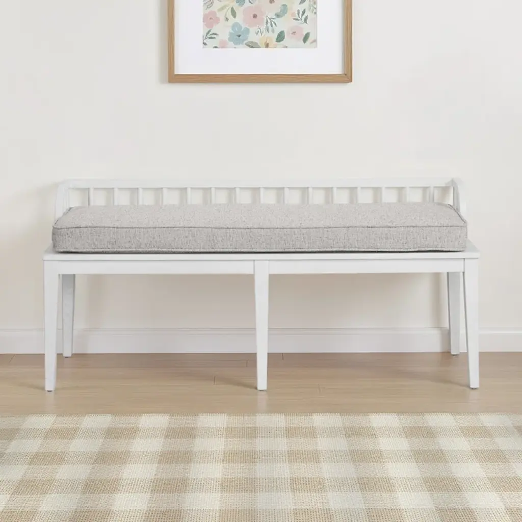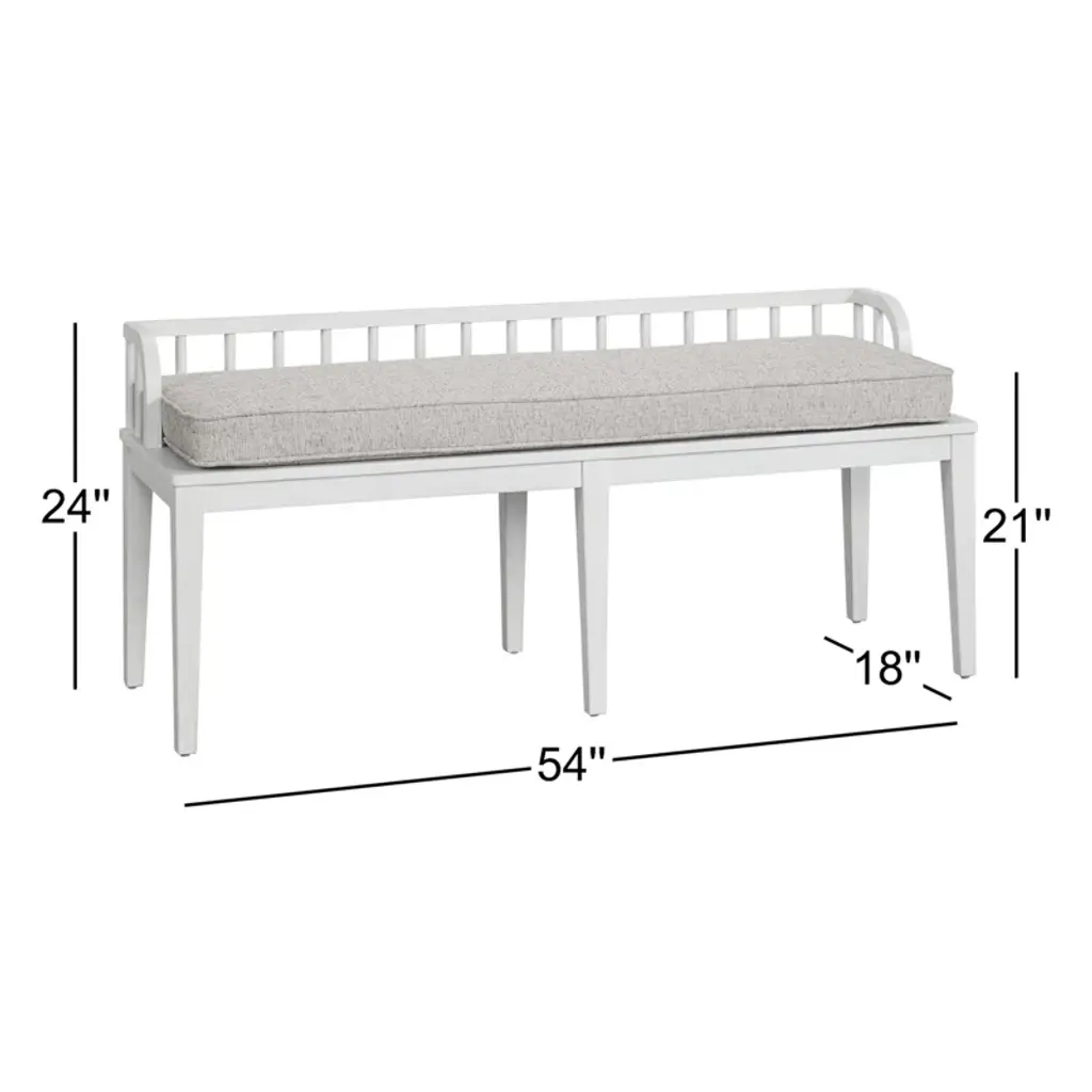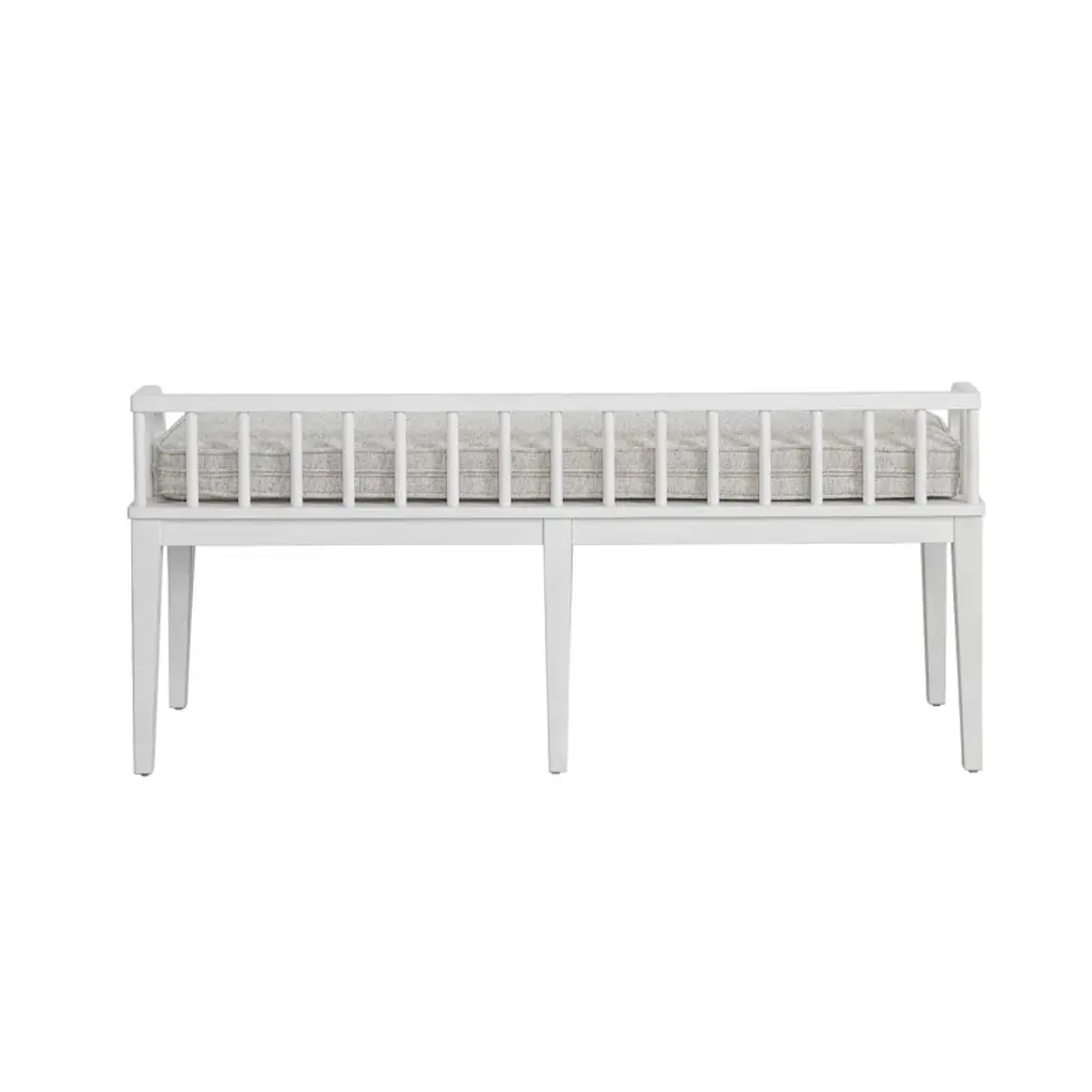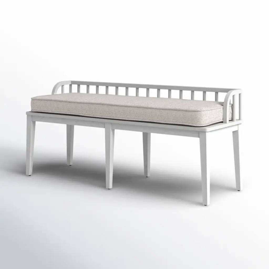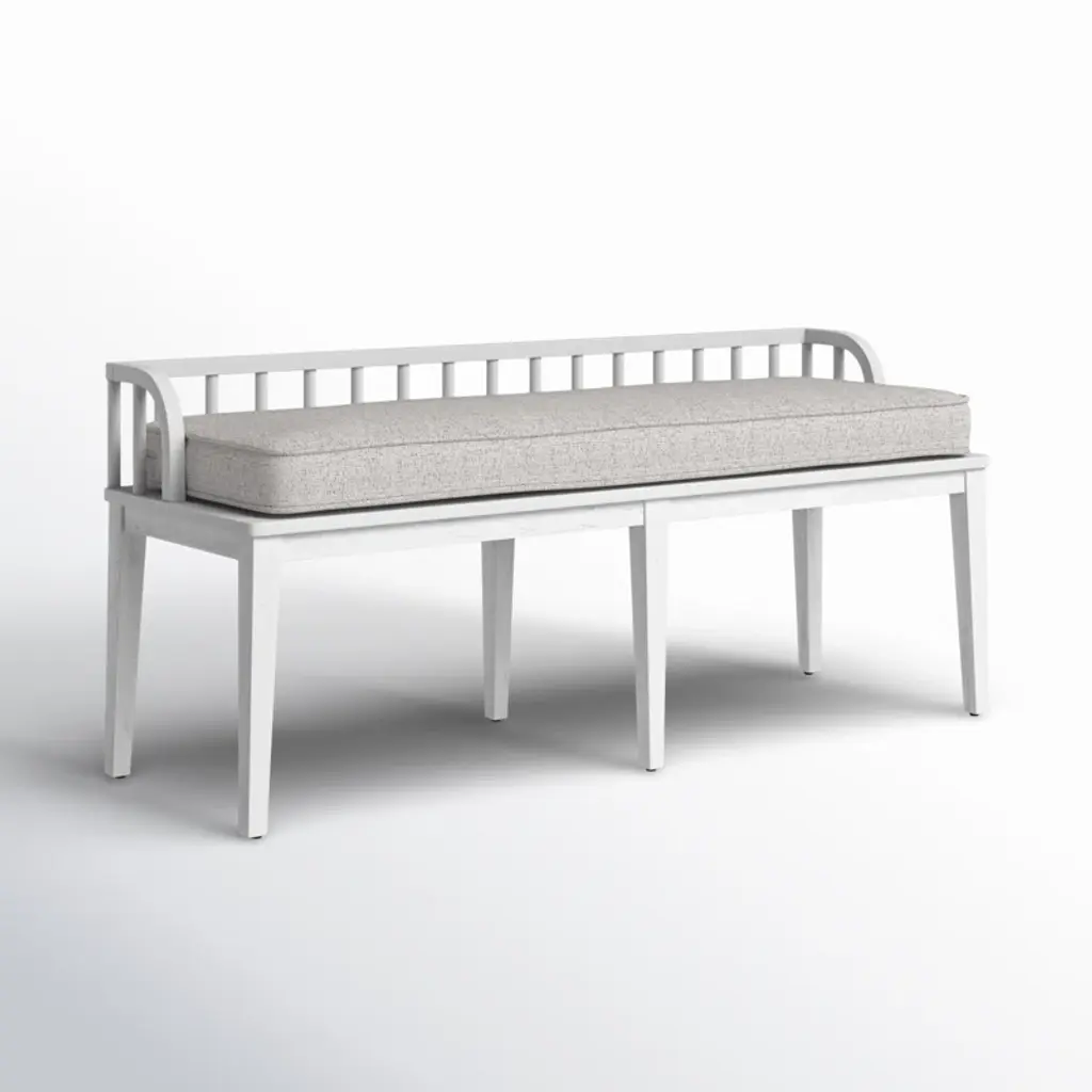 The genteel Bilbrook dining bench features a plush upholstered body and white-hued tapered legs, offering both comfort and function.