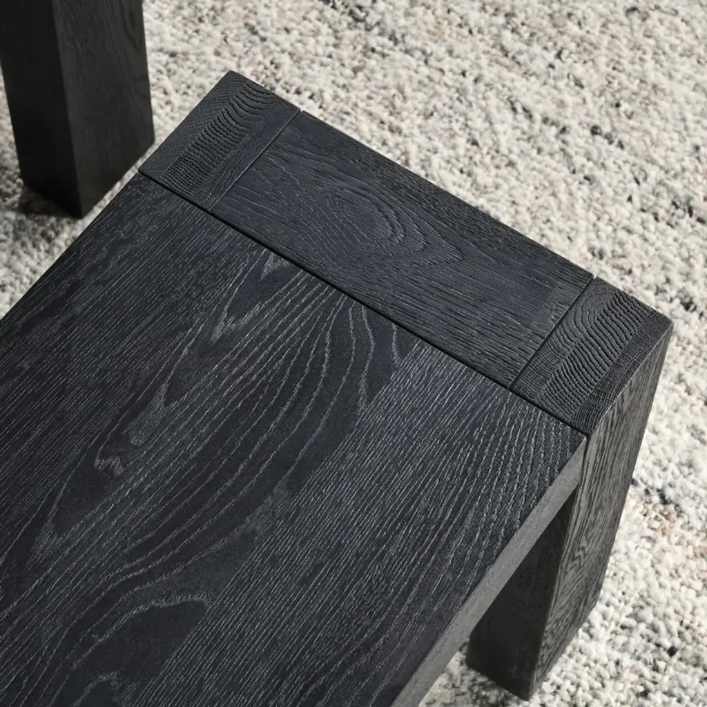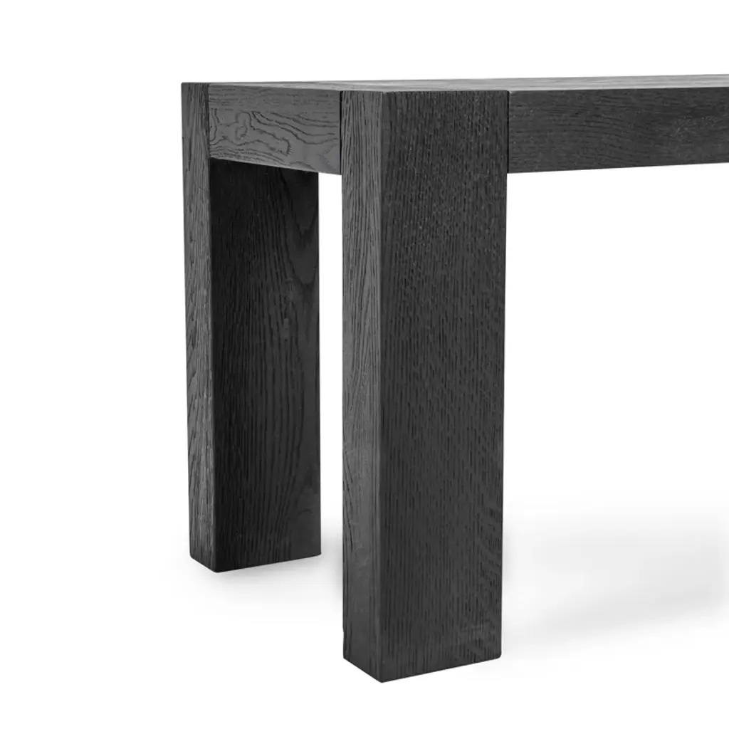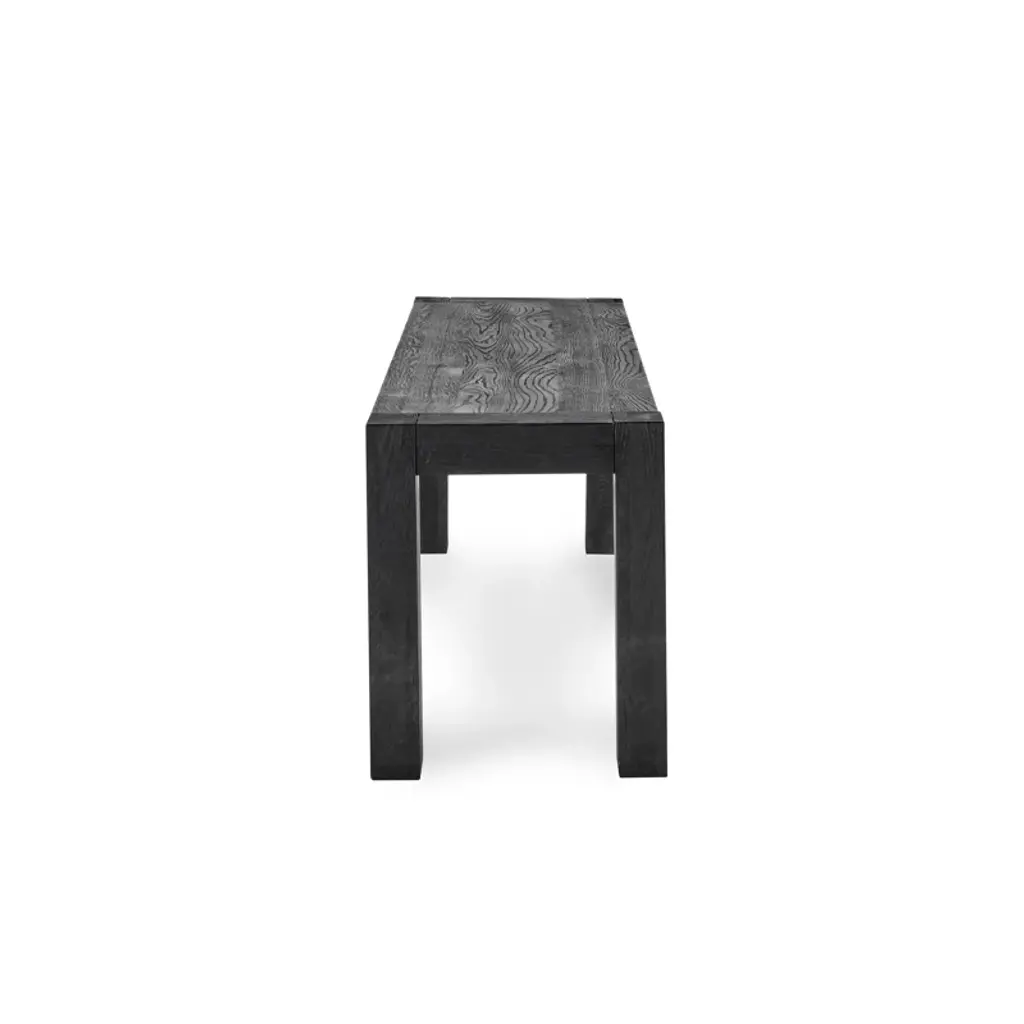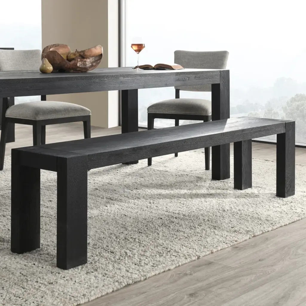 Sleek + sturdy. Crafted from solid oak, this dining bench features a clean-lined silhouette with squared legs for a modern touch. With a seating capacity of four, it's perfect for gathering around the table for shared meals or game nights. No frills, just functional style.