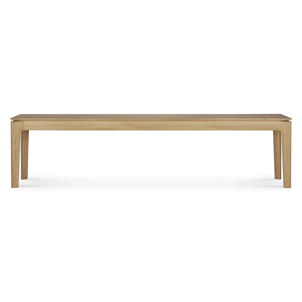 The perfect design to pair with the Bok Dining Table or for use on its own in a hallway or entryway, the Bok Bench from Ethnicraft brings light and airy Scandinavian style to your well-appointed home. A simple, yet striking design showcasing quality construction and a timeless silhouette, station on one side of a dining table paired with solid wood chairs for a dynamic dining display, or place right in your entryway paired with storage pieces to ensure all out-the-door essentials are at hand. Highlights