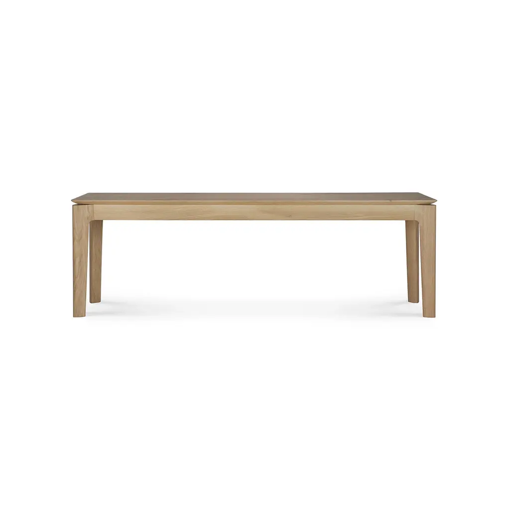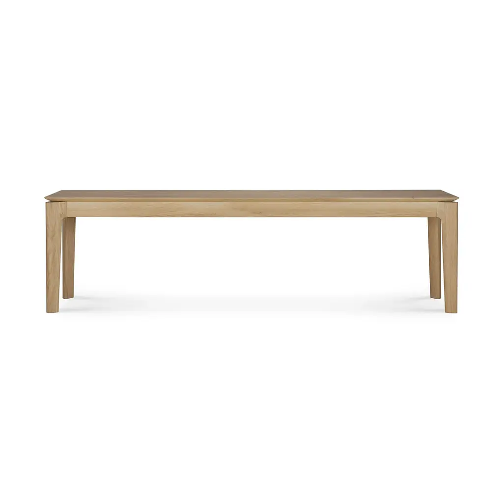 The perfect design to pair with the Bok Dining Table or for use on its own in a hallway or entryway, the Bok Bench from Ethnicraft brings light and airy Scandinavian style to your well-appointed home. A simple, yet striking design showcasing quality construction and a timeless silhouette, station on one side of a dining table paired with solid wood chairs for a dynamic dining display, or place right in your entryway paired with storage pieces to ensure all out-the-door essentials are at hand. Highlights