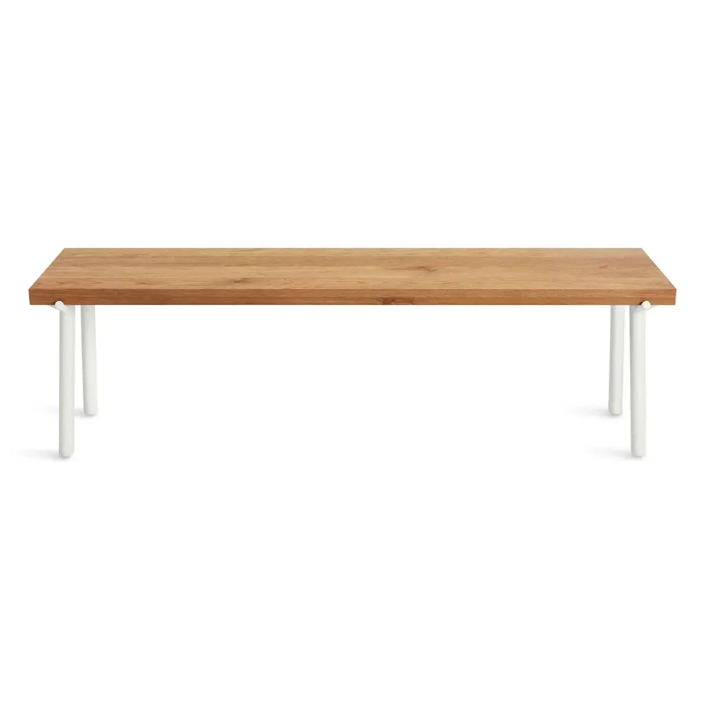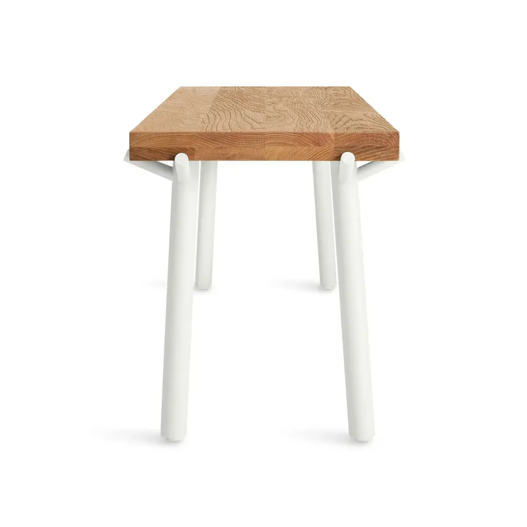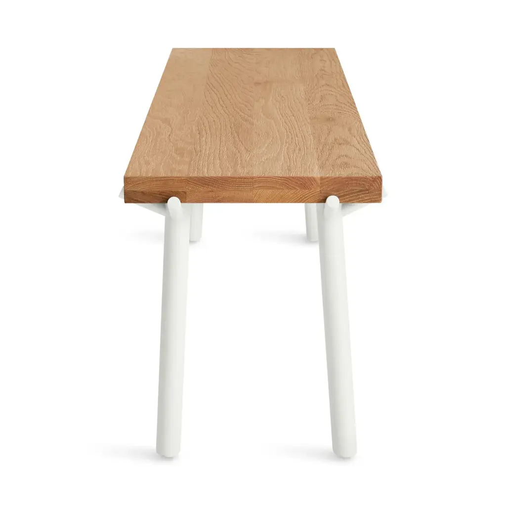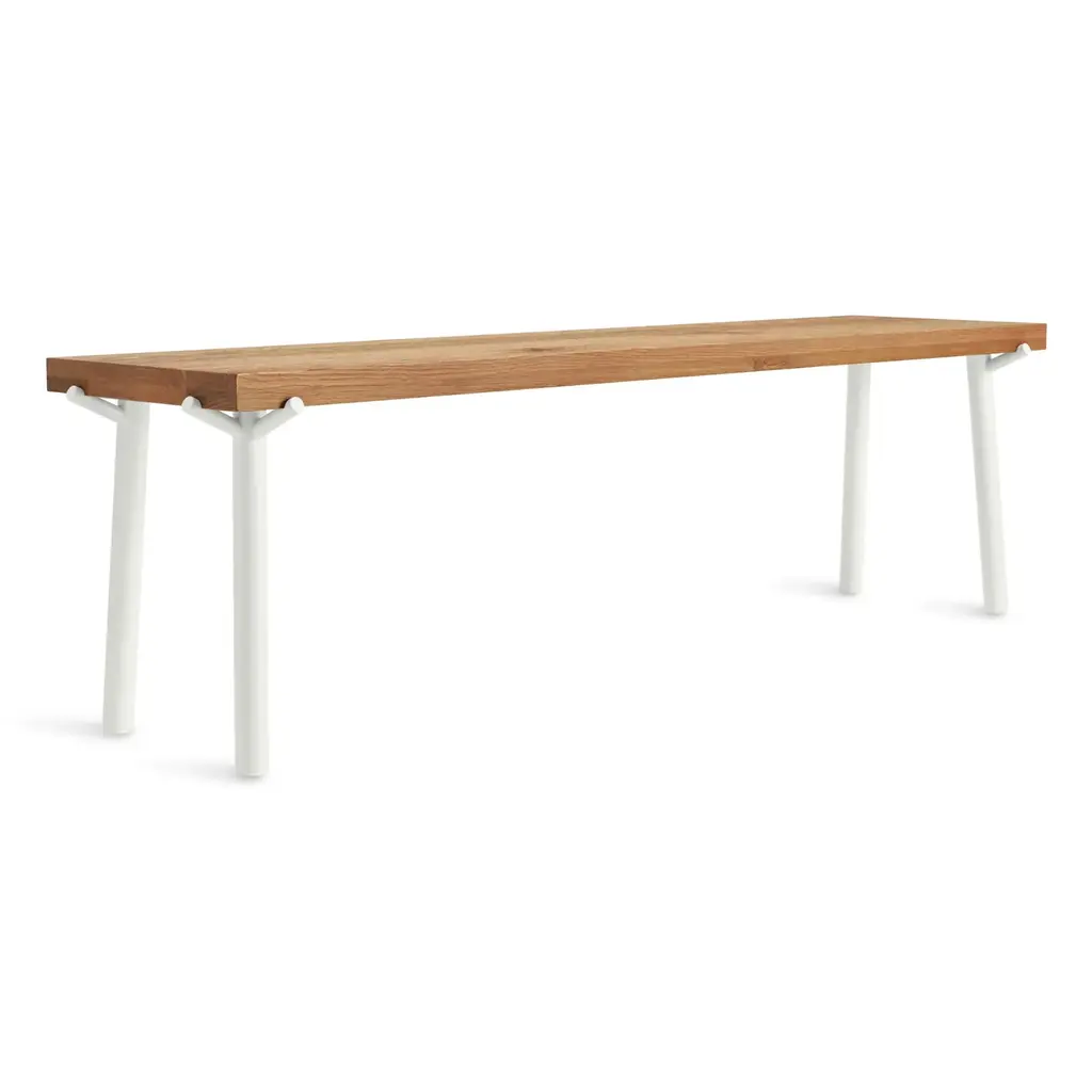 Sculptural powder-coated steel legs handsomely prop up solid wire-brushed oak. Pair with the Branch Table, a different dining table, or use this versatile bench in your entryway.
