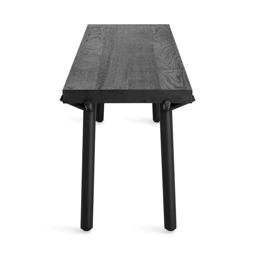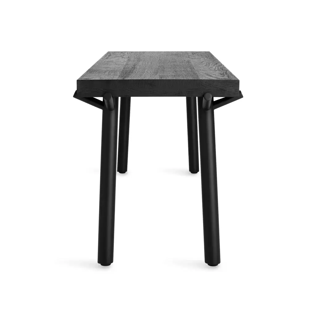 Sculptural powder-coated steel legs handsomely prop up solid wire-brushed oak. Pair with the Branch Table, a different dining table, or use this versatile bench in your entryway.