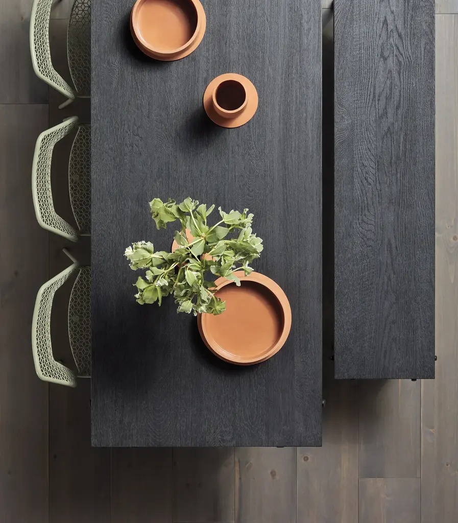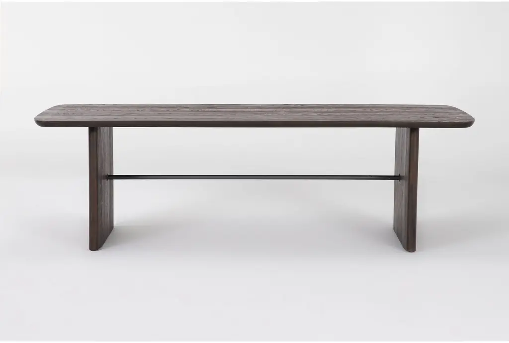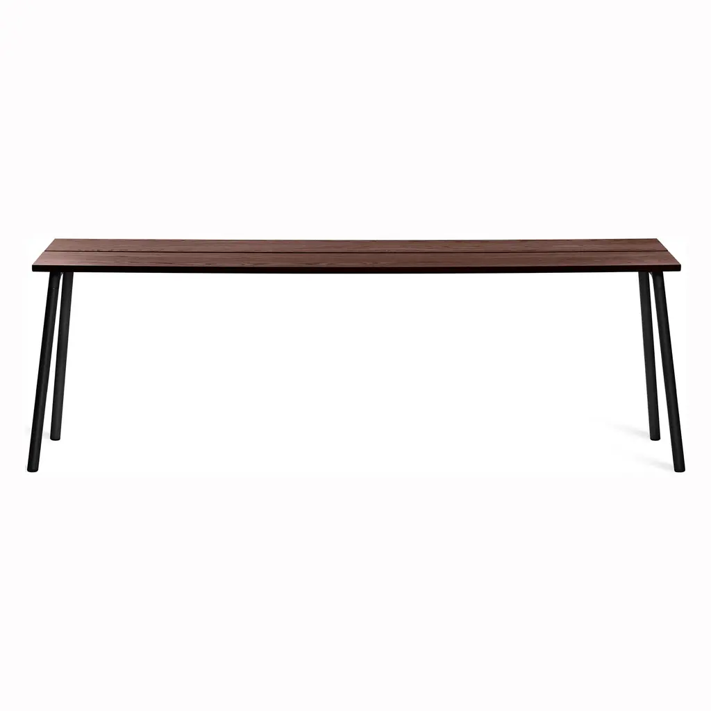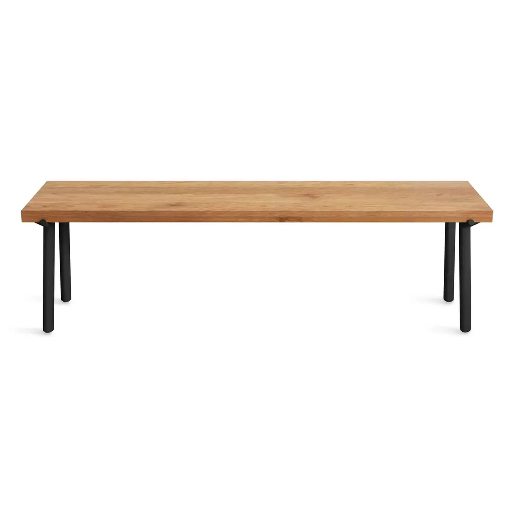 Sculptural powder-coated steel legs handsomely prop up solid wire-brushed oak. Pair with the Branch Table, a different dining table, or use this versatile bench in your entryway.