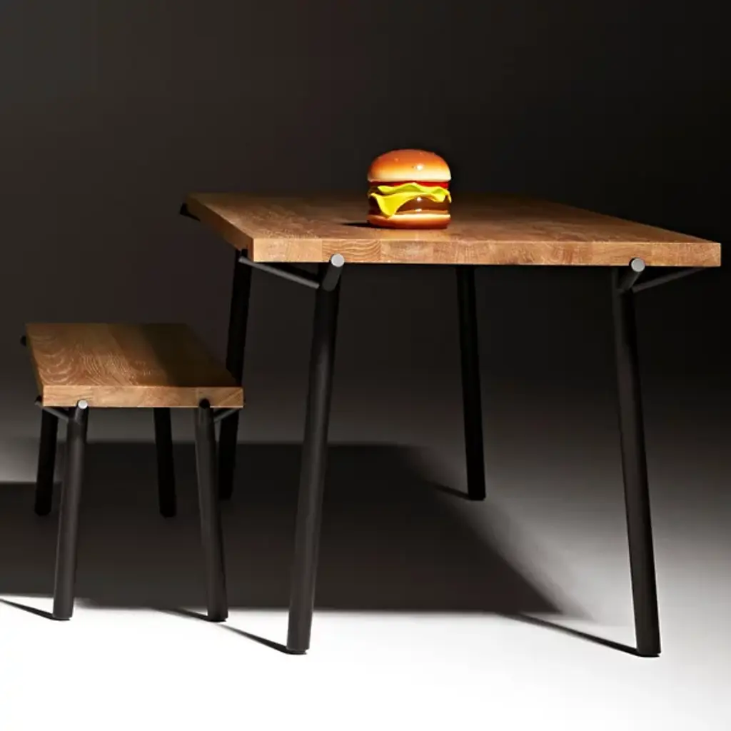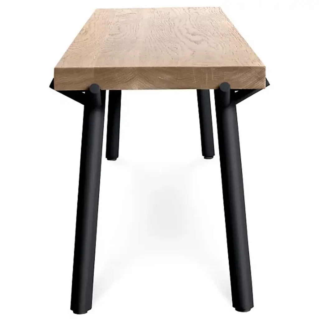 Wood meets branches in the Blu Dot Branch Bench. The seat is a solid plank of weathered oak propped up by powder coated steel legs, and held steadily by their branched "stems." Simple and rustic, this bench pairs beautifully with the Bench Table or any dining table, or even use it as a coffee table.