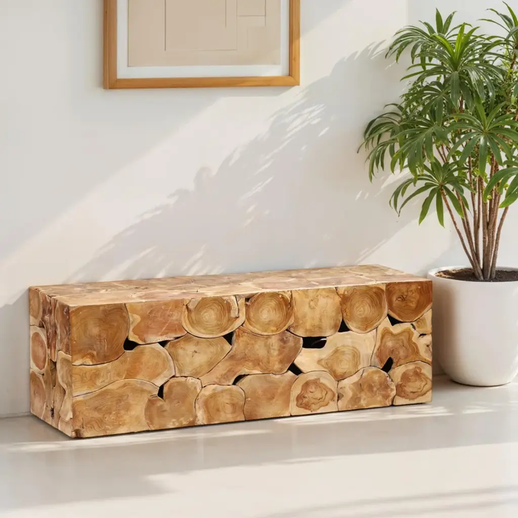 Briar 55" Rectangular Natural Finished Teak Root Solid Bench