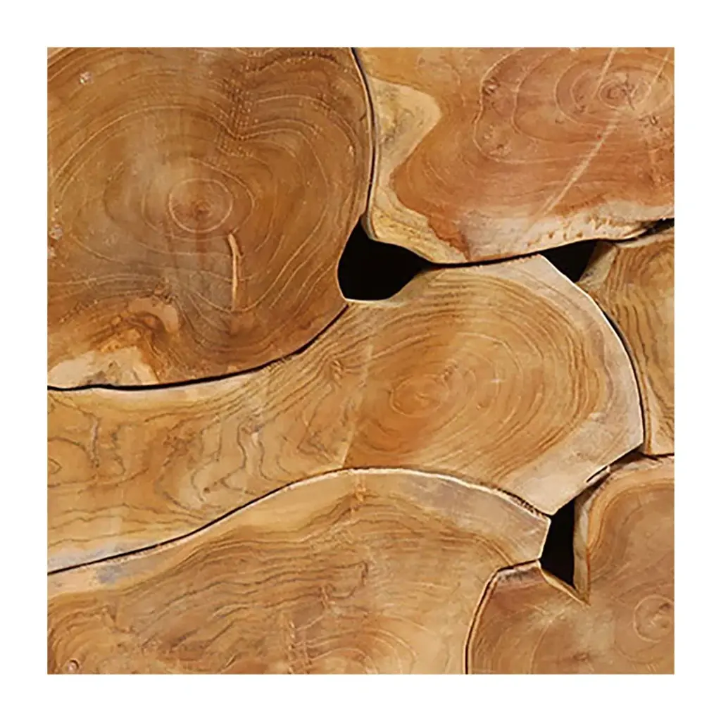 Pieced together from reclaimed slabs and chunks of solid teak wood and finished in a natural finish with exquisite craftsmanship. Artisans build each bench like a puzzle, fitting each piece together in unique combinations that are never duplicated. Like true works of art, no two will be exactly alike. Measuring 55" in length, each bench is perfectly sized to complement any space. Place it in your entryway or at the foot of your bed.