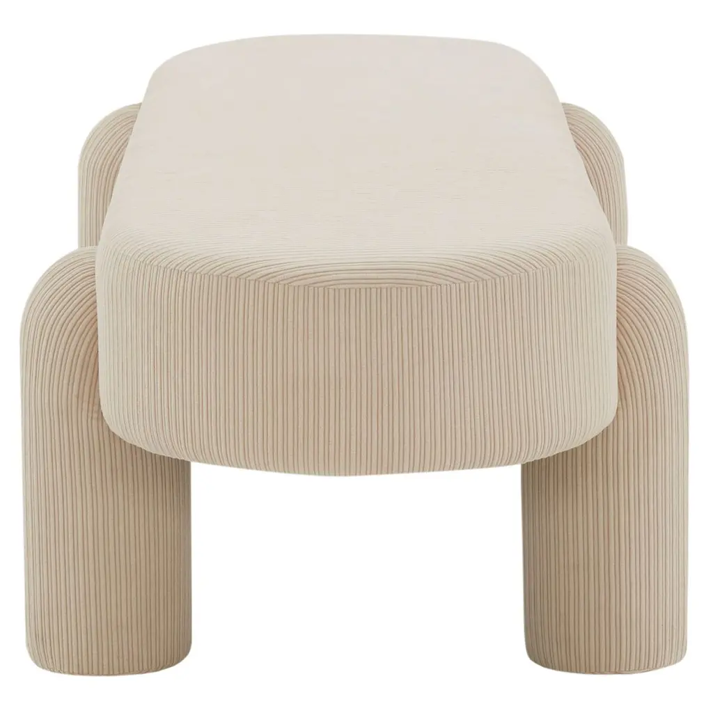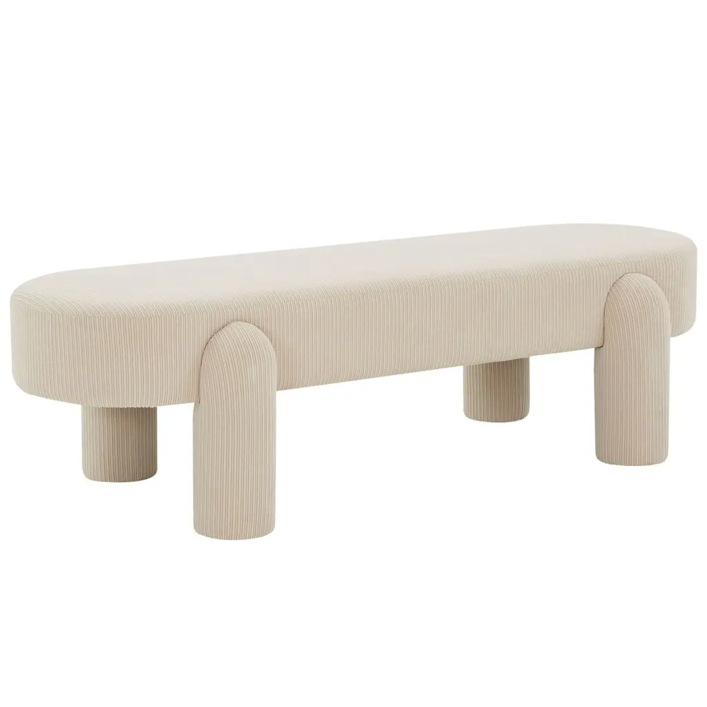 Give a chic and sophisticated upgrade to any corner with our Cambria bench. The clean and crisp silhouette of the bench is softened with gentle curves and plush upholstery. The rounded edges of the seat are beautifully complemented with the curvature of its chunky cylindrical legs to deliver sophisticated drama. The linear texture of the fabric accentuates the chic and plush appeal of our bench. Serving as a luxe accent, the bench can be placed in any entryway, bedroom, or dining area to offer plush comfort and style.