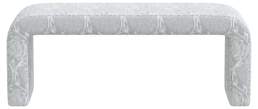 Exclusive to One Kings Lane: One of our most popular prints, the large-scale Ranjit Floral pattern is now available on this bench, which features sleekly rounded corners. Whether you place it at the foot of your bed, beneath a window, or alongside your dining table, the bench will bring panache to its surroundings.