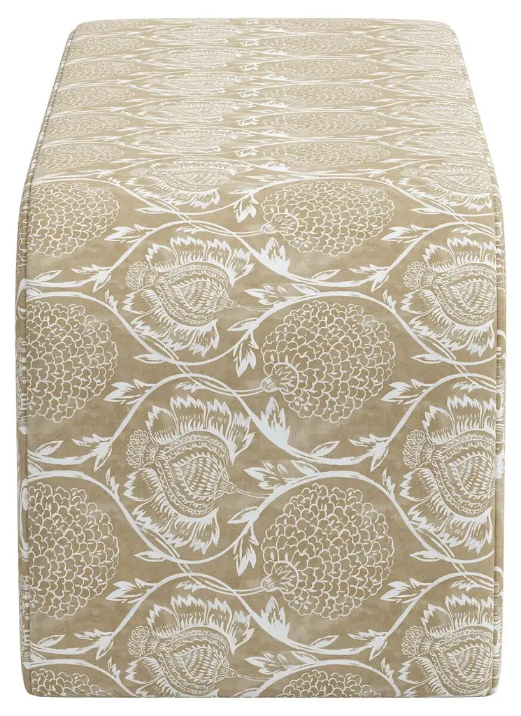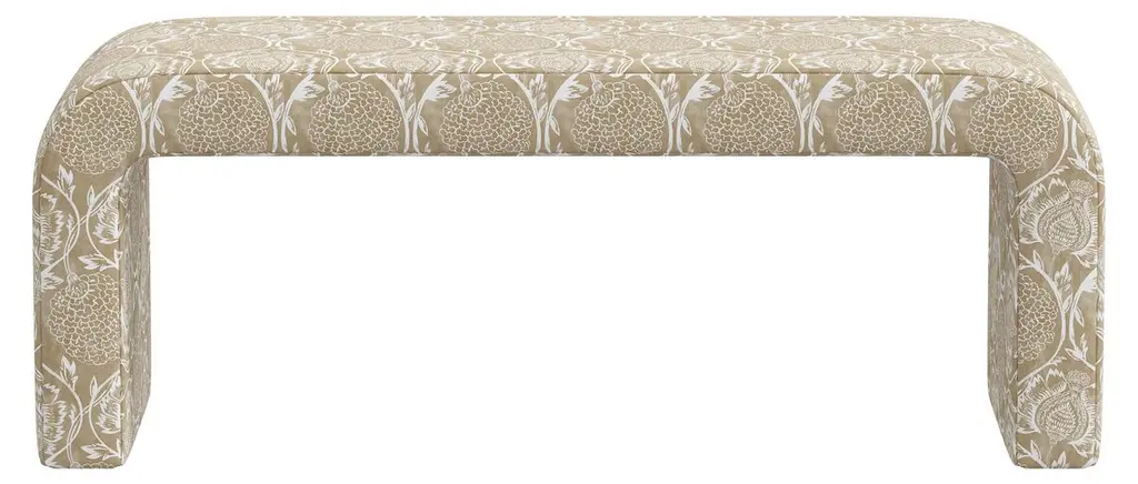 Exclusive to One Kings Lane: One of our most popular prints, the large-scale Ranjit Floral pattern is now available on this bench, which features sleekly rounded corners. Whether you place it at the foot of your bed, beneath a window, or alongside your dining table, the bench will bring panache to its surroundings.