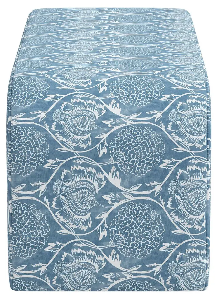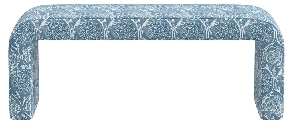 Exclusive to One Kings Lane: One of our most popular prints, the large-scale Ranjit Floral pattern is now available on this bench, which features sleekly rounded corners. Whether you place it at the foot of your bed, beneath a window, or alongside your dining table, the bench will bring panache to its surroundings.