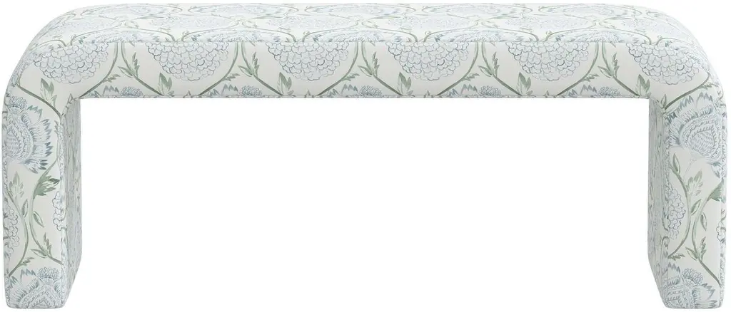 Exclusive to One Kings Lane: One of our most popular prints, the large-scale Ranjit Floral pattern is now available on this bench, which features sleekly rounded corners. Whether you place it at the foot of your bed, beneath a window, or alongside your dining table, the bench will bring panache to its surroundings.