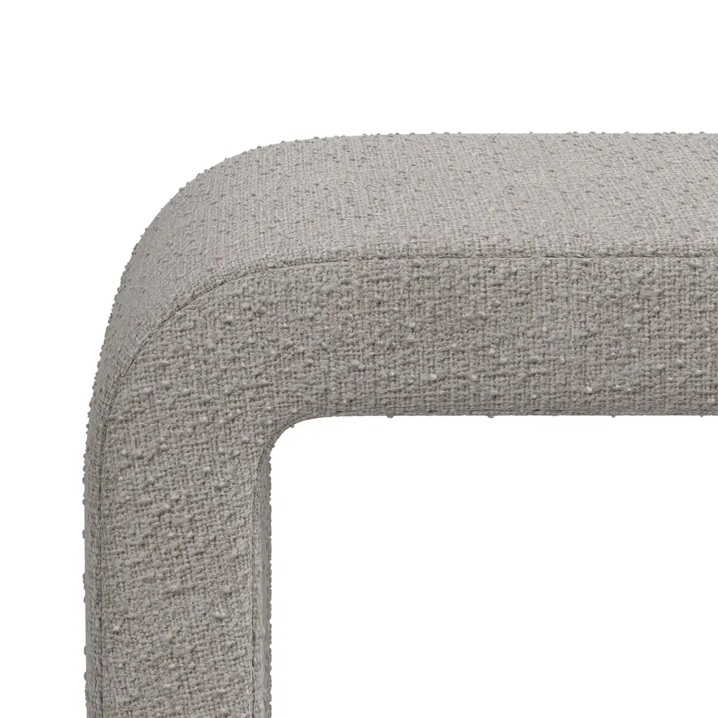 Made in the USA and upholstered in a lush bouclé-like fabric, this bench features rounded corners for a fresh contemporary vibe. Whether you place it at the foot of your bed, beneath a window, or alongside your dining table, it will bring panache to its surroundings.