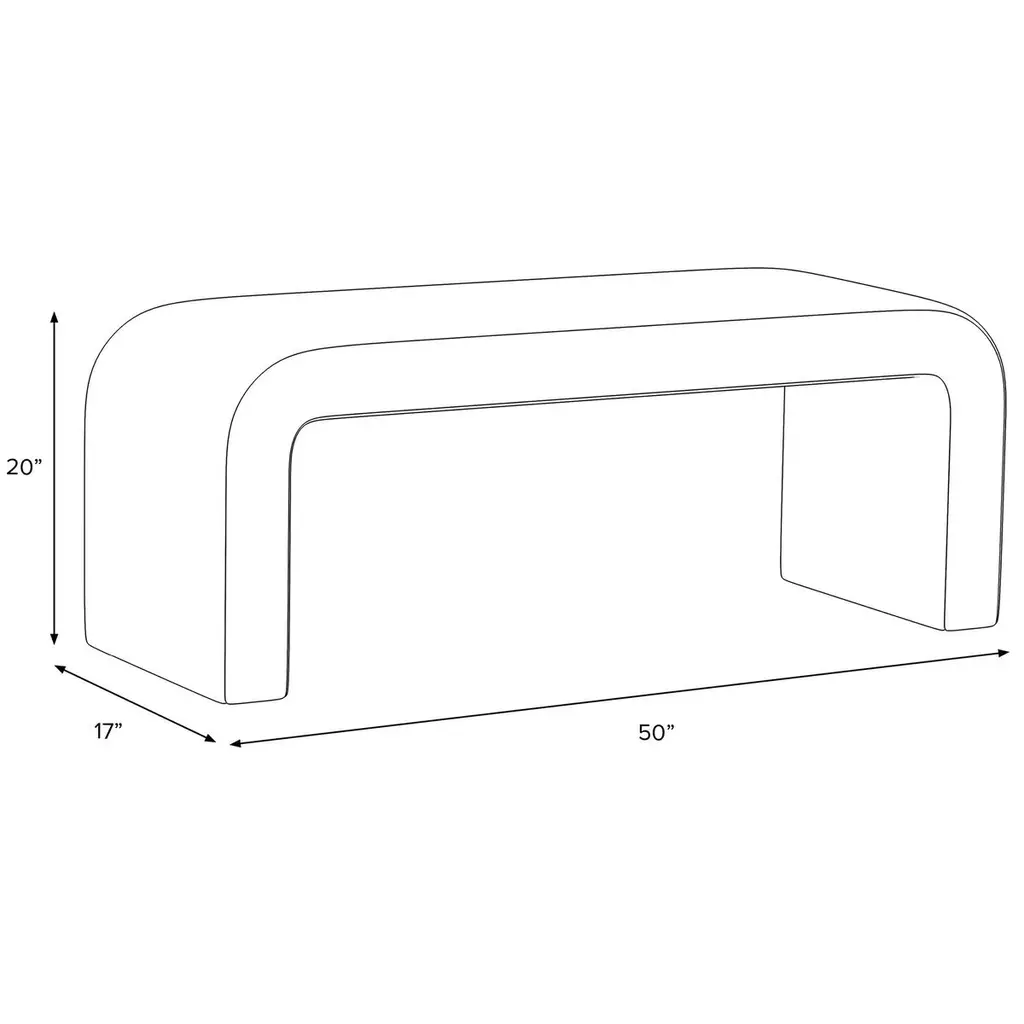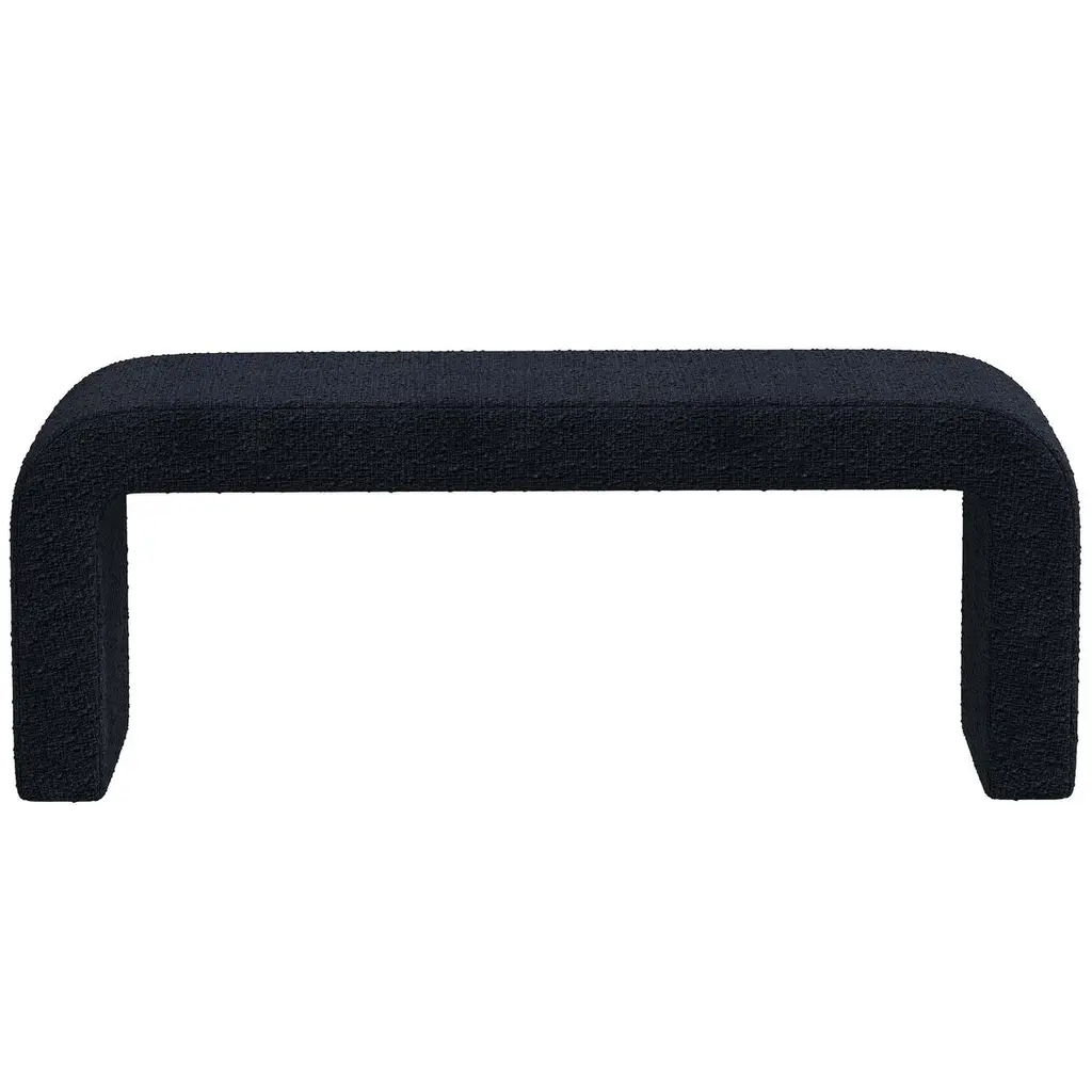 Made in the USA and upholstered in a lush bouclé-like fabric, this bench features rounded corners for a fresh contemporary vibe. Whether you place it at the foot of your bed, beneath a window, or alongside your dining table, it will bring panache to its surroundings.