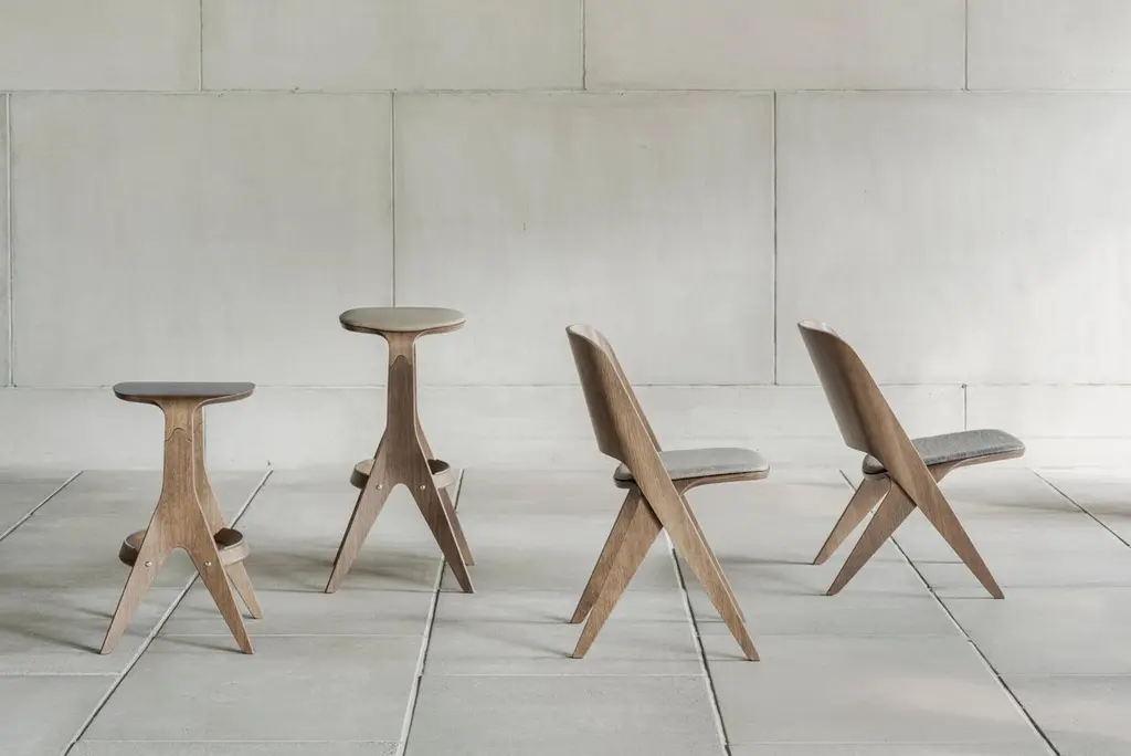 Counter stool Lavitta 65 by PoiatDesigners: Timo Mikkonen & Antti Rouhunkoski Lavitta 2020Model shown: Dark oak Dimensions: H. 65 x 50 x 44 cmThe latest member of the Lavitta Collection, the Lavitta Counter Stool continues focusing on the sophisticated union of traditional wooden furniture with contemporary design. Designed by Timo Mikkonen and Antti Rouhunkoski of Poiat Studio in 2020, the stools follow the lines of the Lavitta Chairs with their tapering legs and rounded corners. The base of the stools is made entirely of veneered and moulded plywood, without any steel parts. The Lavitta Counter Stool and Bar Stool can be customized with a variety of leather and wool upholsteries.Drawing its influence from the traditional rugged Finnish outdoor furniture, the award-winning Lavitta Collection was designed by Poiat Studio as their first furniture collection for Poiat Furniture.Manufactured in Finland and Estonia, the members of the Lavitta product family are chairs, dining tables, benches and stools. The counter stools are made of two pieces of moulded plywood, and they can be tailored to different spaces with a variety of leather and wool upholsteries.