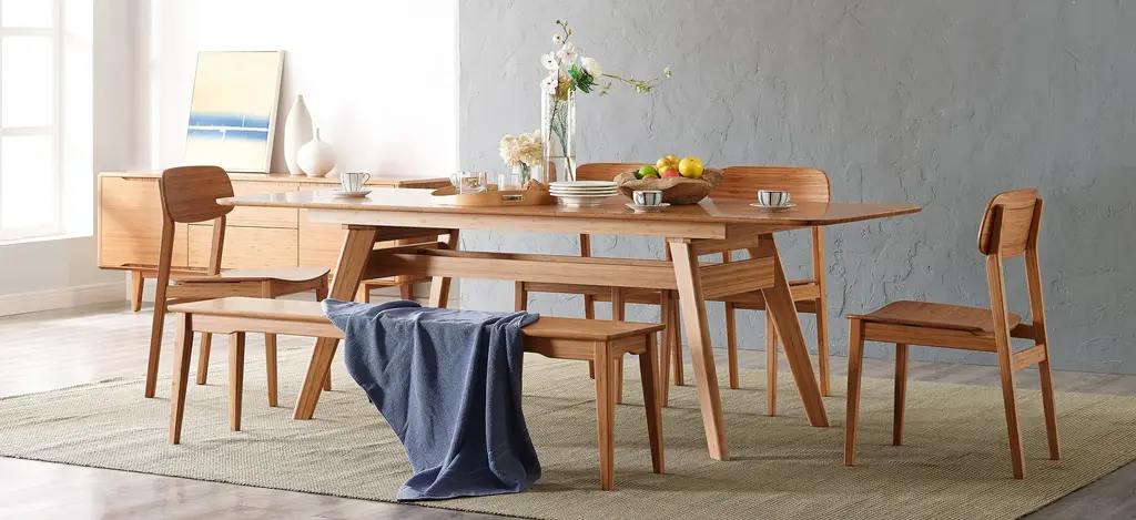 The Currant long dining bench brings the simple elegance of Mid-Century design into the modern home. The tapered legs and bamboo seat showcase the beautiful color and grain of solid bamboo. This bench is a comfortable complement to just about any room. The Currant long dining bench is crafted in 100% solid Moso bamboo, combining beautiful design, rich colors, and a winning green sustainability story.