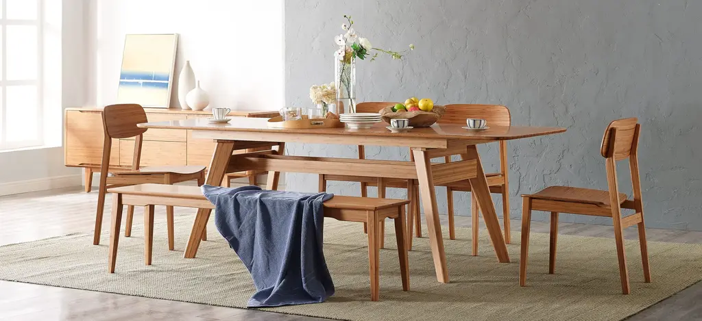 The Currant short dining bench brings the simple elegance of Mid-Century design into the modern home. The tapered legs and bamboo seat showcase the beautiful color and grain of solid bamboo. This bench is a comfortable complement to just about any room. The Currant short dining bench is crafted in 100% solid Moso bamboo, combining beautiful design, rich colors, and a winning green sustainability story.