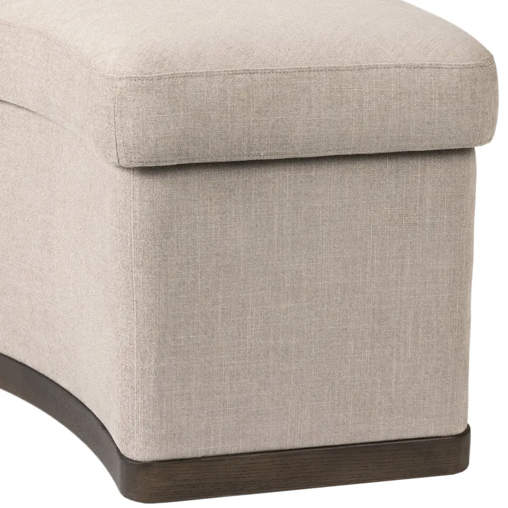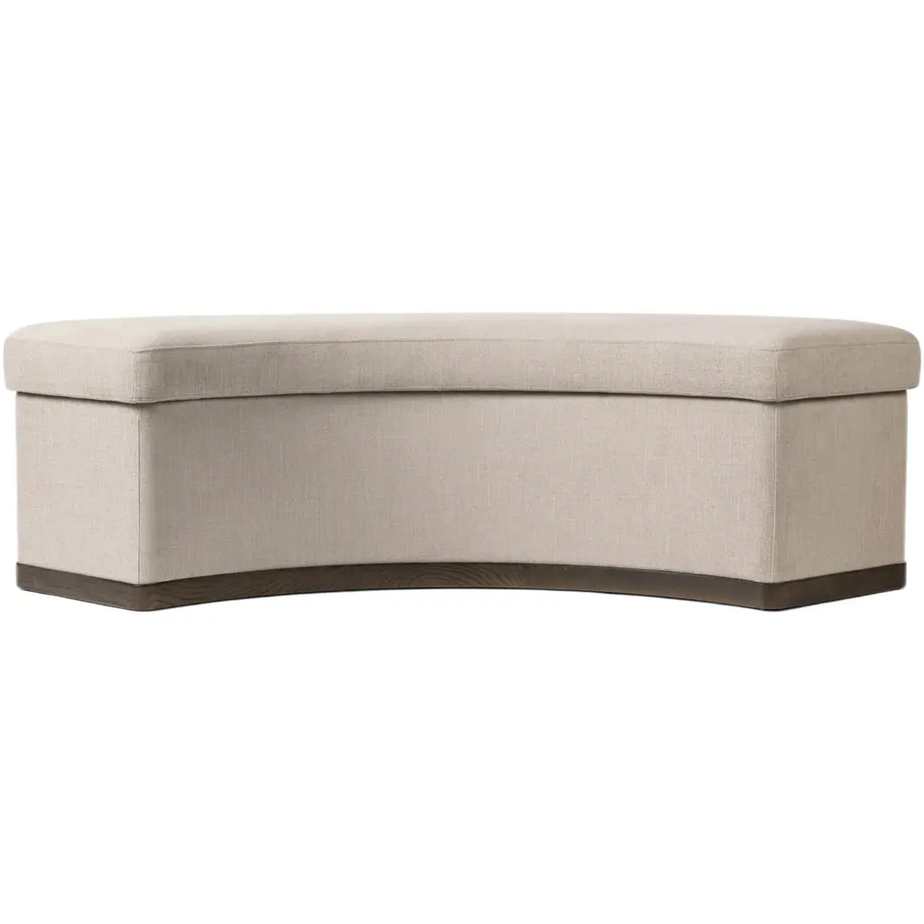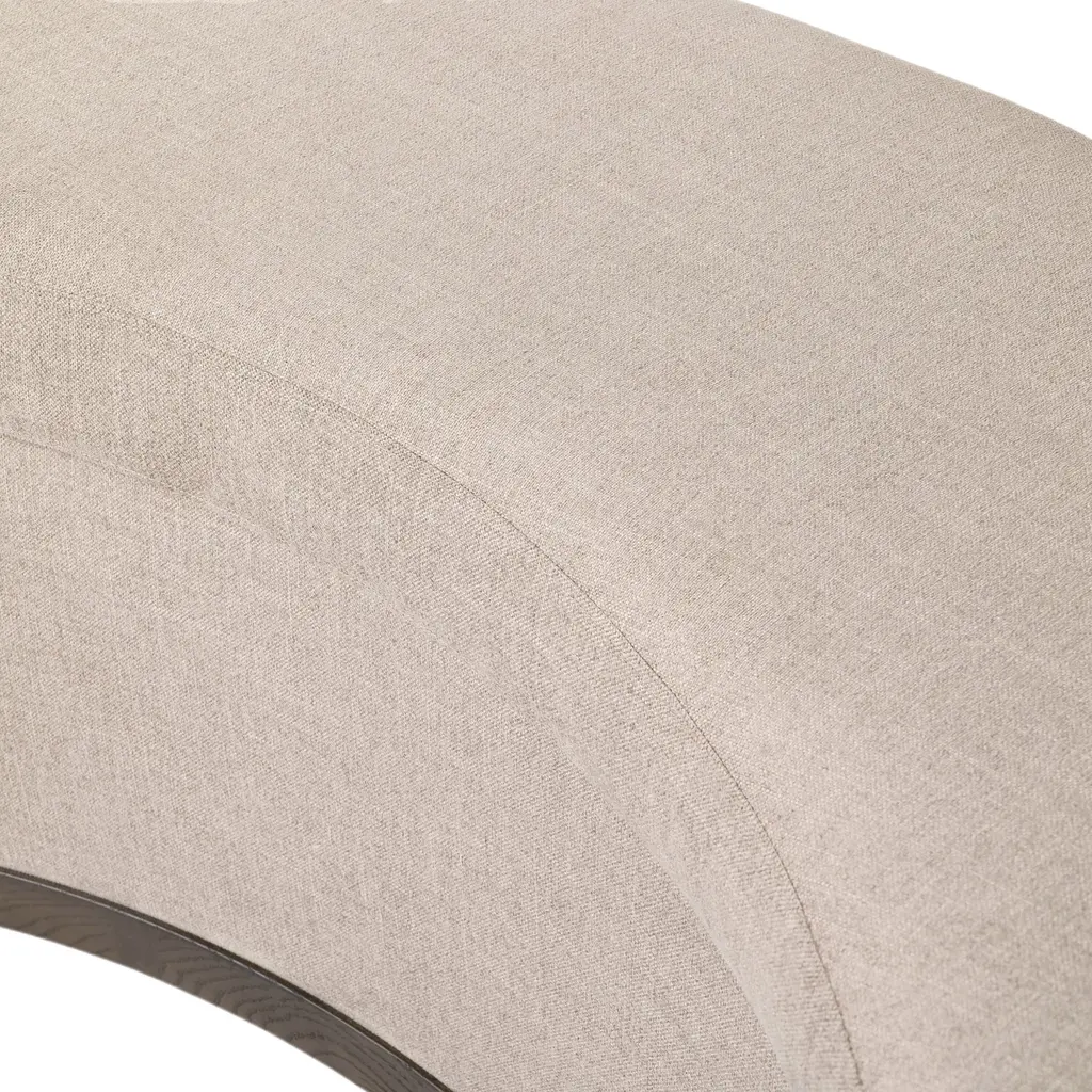 The Cylana Dining Bench - Harbor Sand brings a tailored, timeless elegance to your dining area. Designed to complement a round dining table, this bench features a beautifully curved frame and seat, grounded by a sturdy base. Upholstered in high-performance fabric, it is perfect for everyday use, offering resilience against spills, stains, and high traffic. This ensures long-term comfort and unmatched durability, making it an ideal choice for those seeking both style and practicality in their dining space.