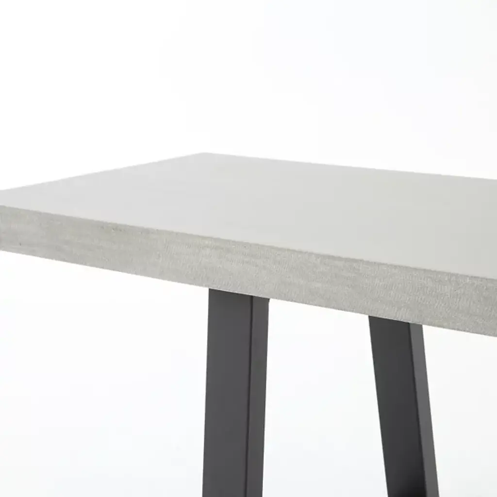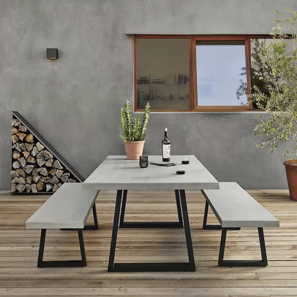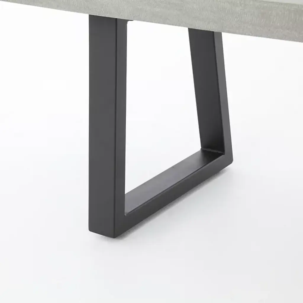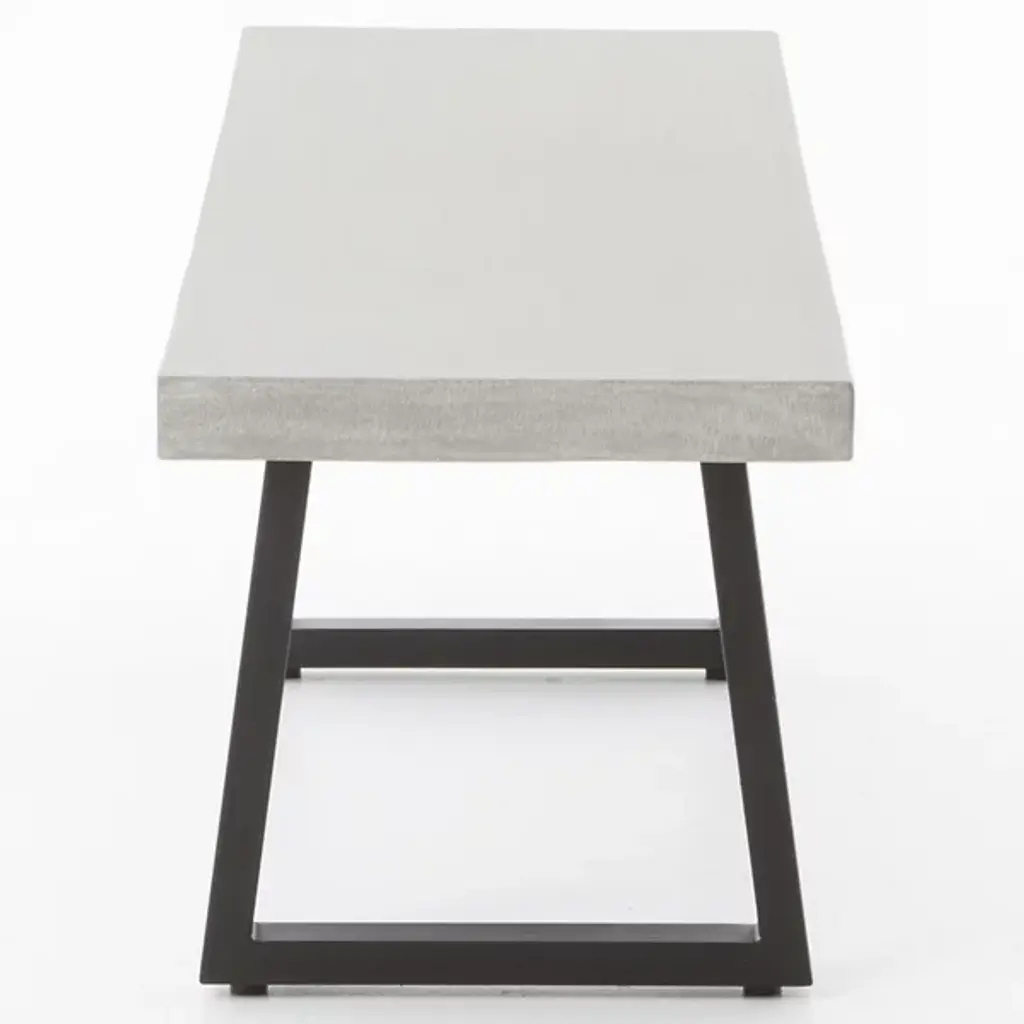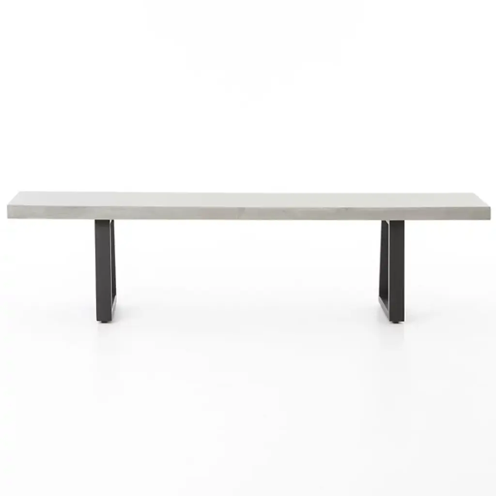Bring a contemporary design statement to your outdoor dining space with the Cyrus Outdoor Dining Bench from Four Hands. It features a streamlined lavastone composite seat. The streamlined lavastone top provides a honed surface, contrasting beautifully with the bench’s geometric, open-framework iron legs for an artistic flair. At home in 21st-century backyard dining settings, Cyrus brings a hint of geometric intrigue while its airy, minimalist legs allow for breezy movement underneath.