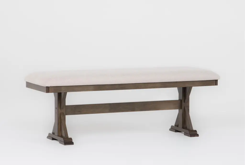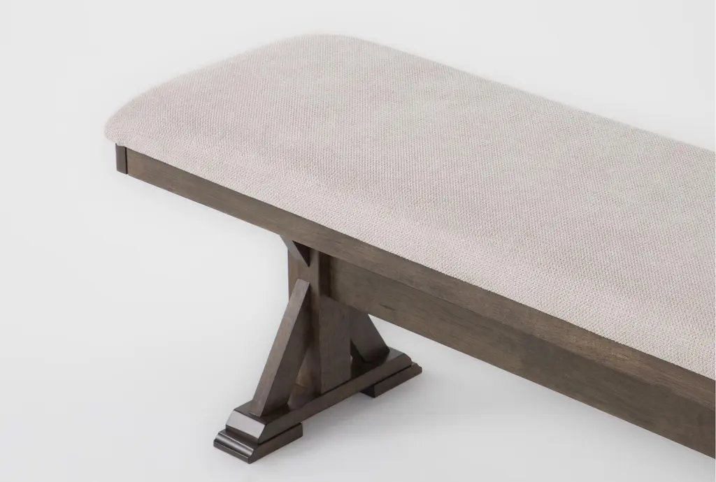 The Delfina II Brown Wood 53" Dining Bench brings a touch of traditional charm to your dining room. Made from durable rubberwood, this bench is designed to provide comfortable seating for your family and guests. The grey fabric seat adds a subtle contrast to the rich brown wood, creating a beautiful and functional addition to your home.