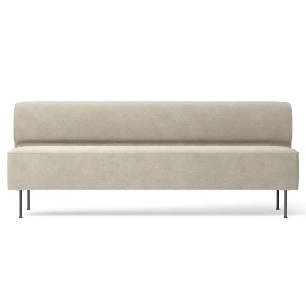 Add an unmistakably refined sense of comfort to gathering spaces with the Eave Dining Sofa from Audo Copenhagen. A simple Scandinavian design made in Lithuania, this combination sofa-bench is strong and soft, using slender legs to elevate a steel frame softened by PU foam over no-sag springs. Each piece of the upper sofa is sheathed in Re-granulated Polypropylene fabric, offering resistance to spills and wear. At the same time, the curving roof-style ‘eave’ of the masterfully modular seat back evokes the iconic architectural feature.
