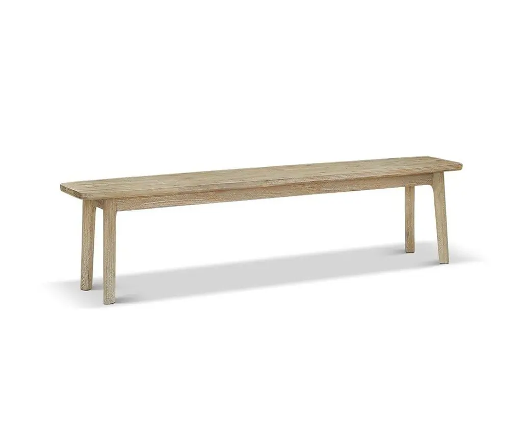Opt for a more traditional approach to dining room seating with the Eckler bench. It pairs perfectly with the Eckler extension table. Crafted with solid acacia wood, it features a light grey stain to highlight the swirling grain. The natural feel of this piece is anchored by organic features such as knots, highlighted wood grain and color variations.
