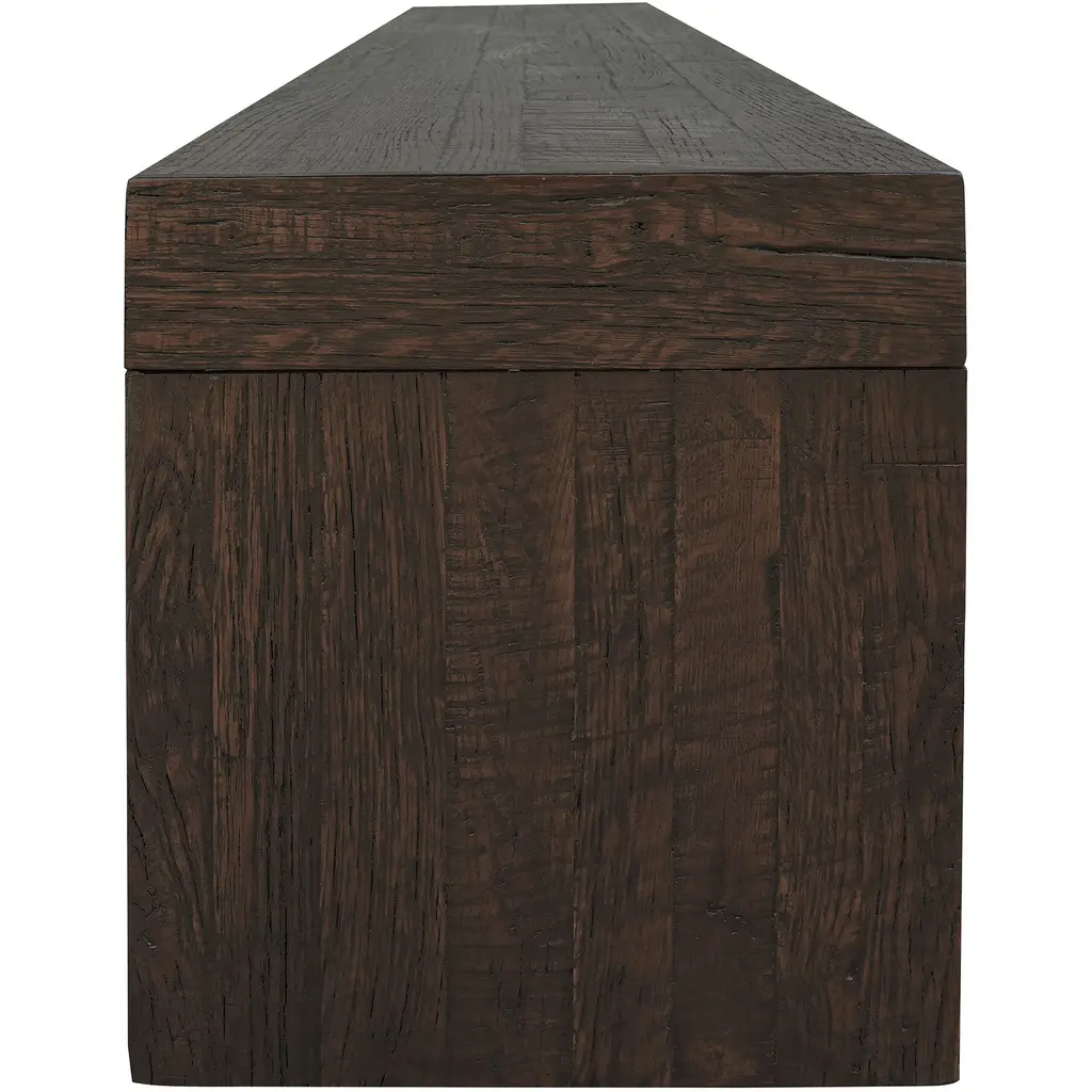 Hand-painted and crafted from solid reclaimed oak, beautiful natural grains, knots and imperfections take center stage with the Evander dining bench. Its modern, blocked construction balances rustic and contemporary design with organic energy, adding character and warmth to any space.