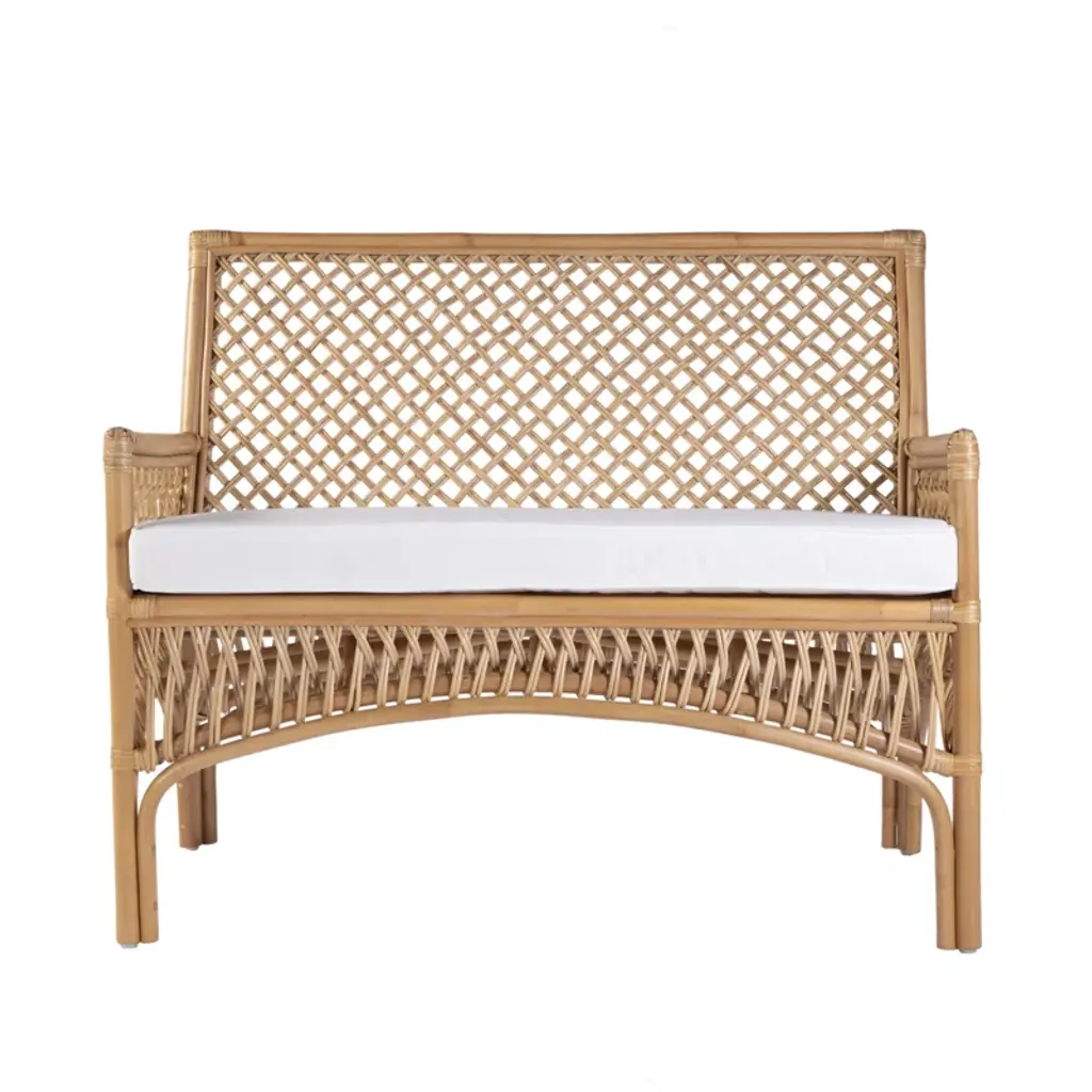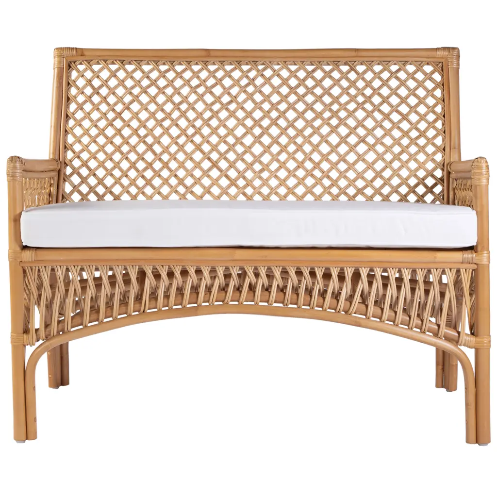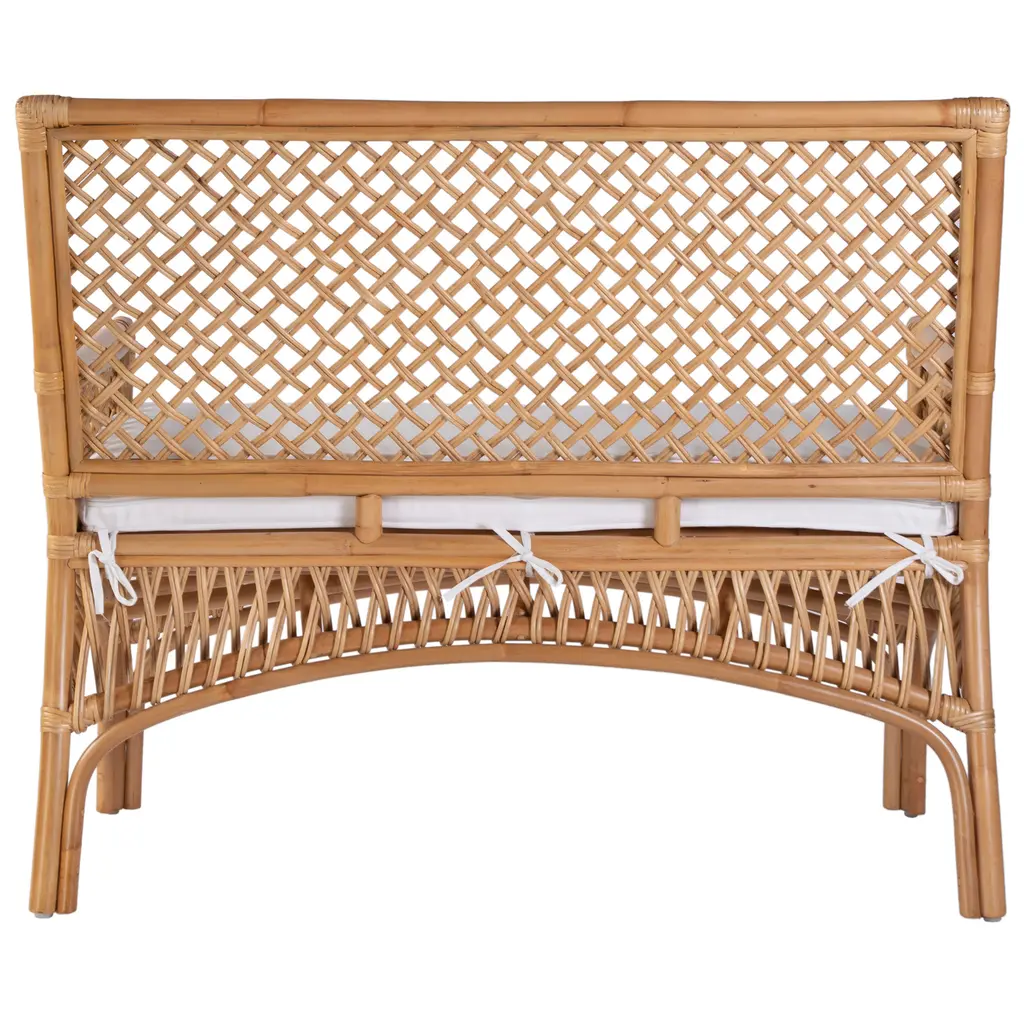 Evric 42" Rattan Dining Bench W/ Back, Natural Rattan/white