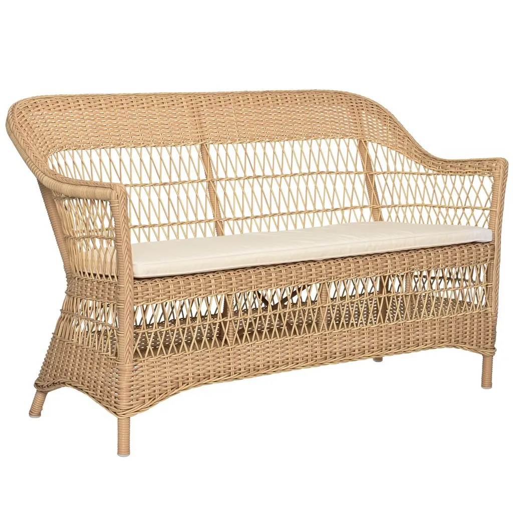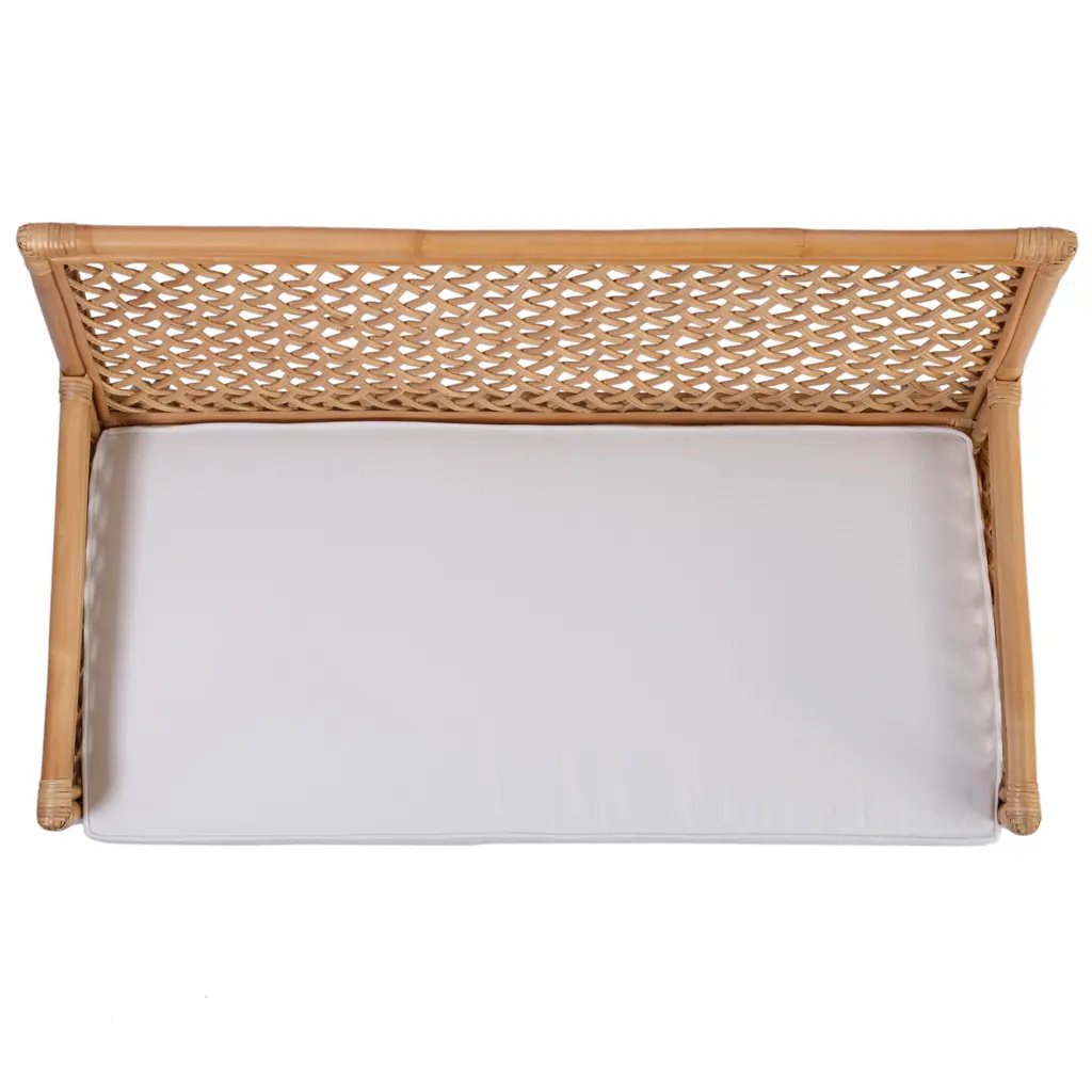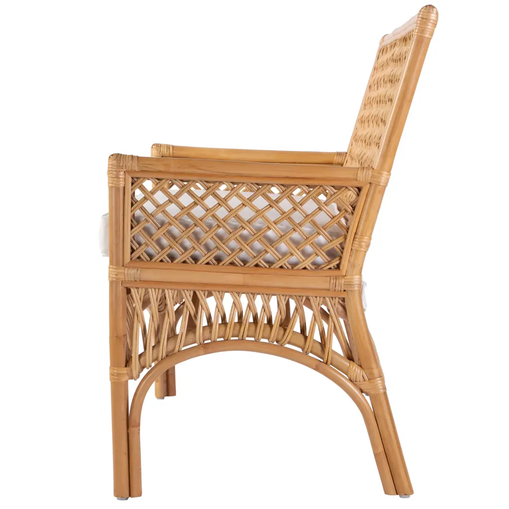 Evric 42" Rattan Dining Bench W/ Back, Natural Rattan/white