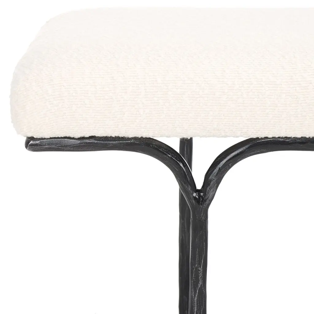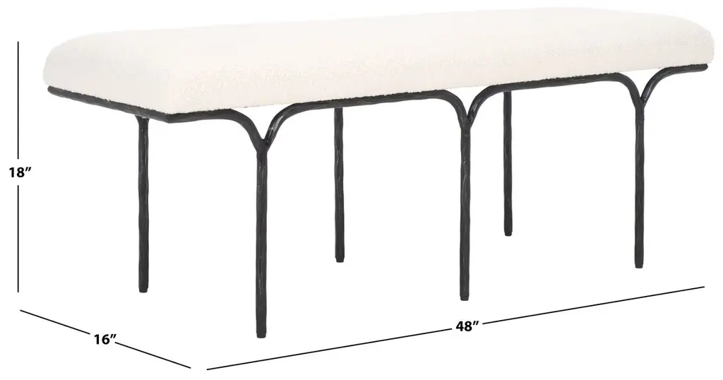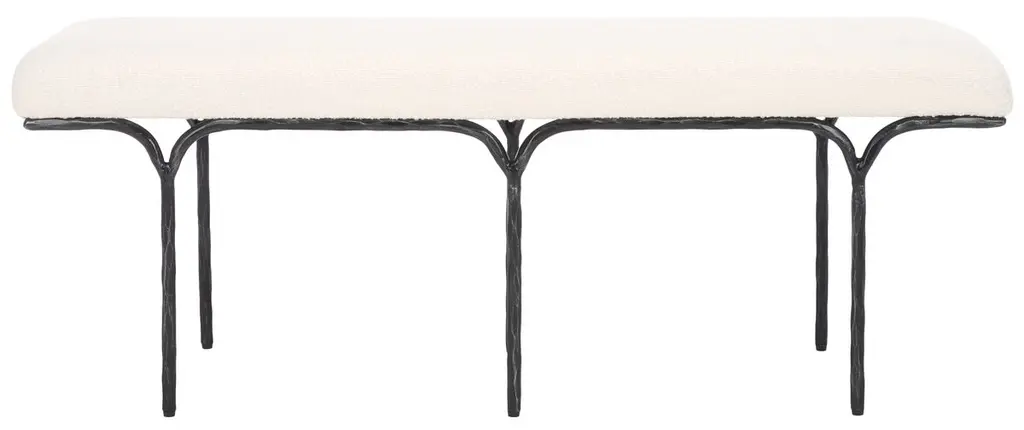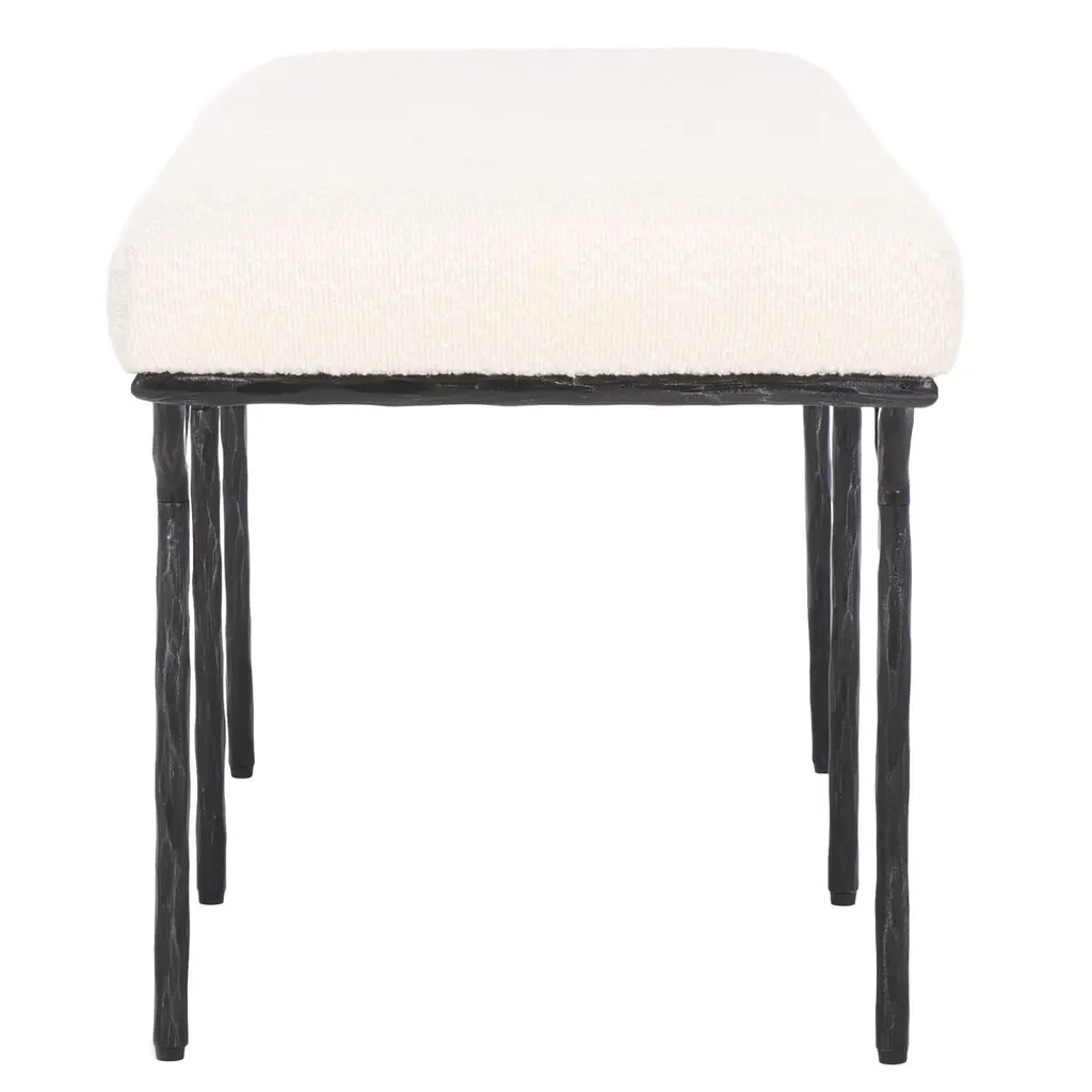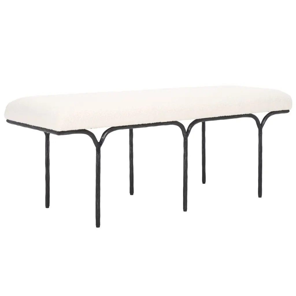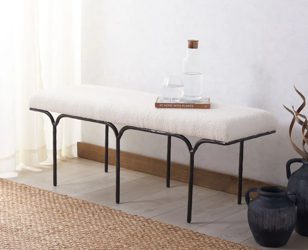 Bring a dose of style and elegance to your home with our Faeryn bench. Featuring a sophisticated mix of materials, our bench stands out with its refined look and timeless appeal. Its generously cushioned seat is covered in the rich and nubby textures of boucle. It creates an eye-catching contrast with the slender metallic base. Showcasing stylized details, the bench makes a stylish impact. It can create an elegant place to land in your entryway, living space, dining, or bedroom.