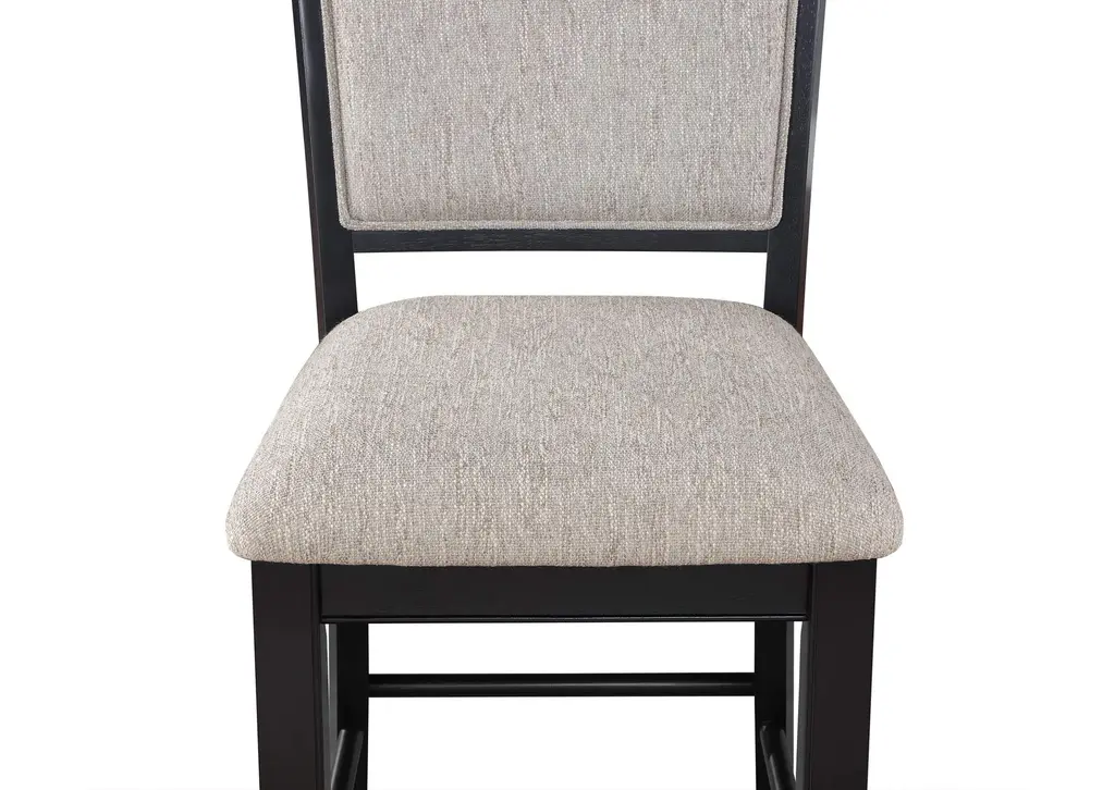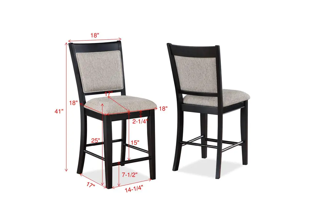 Introduce a touch of contemporary sophistication to your dining area with this stunning counter height dining set. The centerpiece table boasts a chic, two-tone finish with a sleek, dark base and a beautifully textured gray tabletop with built-in turntable, offering a striking contrast that enhances any décor. Accompanying the table are four stylish chairs and a comfortable bench, all upholstered in a premium, soft fabric that ensures an inviting and relaxing dining experience. The robust wooden construction provides lasting durability and stability, while the modern design elements make this set a perfect blend of style and functionality. Ideal for both everyday meals and special gatherings, this set promises to transform your dining space into a stylish and welcoming haven. Weight 41.800 lbs. (18.81kgs.)